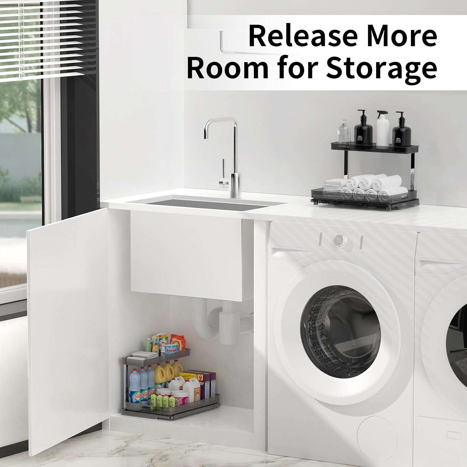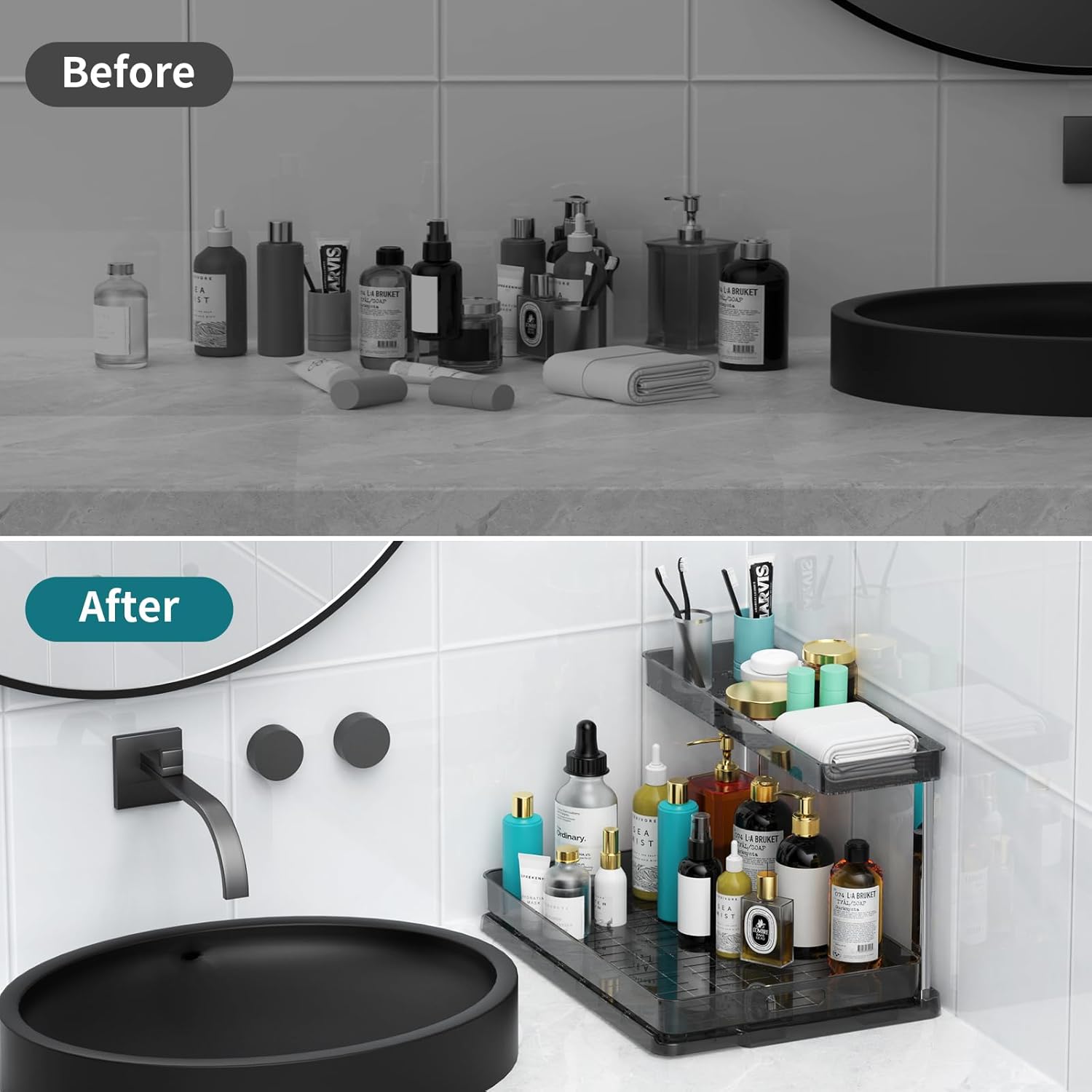 Multi-purpose Organizer: The 2-tier undersink storage organiser optimizes vertical spaces and makes any under-counter space tidy and organized, greatly reducing under sink clutter. It’s not just a great storage unit for bathroom, laundry room and kitchen, but also a reflection of a well-managed home