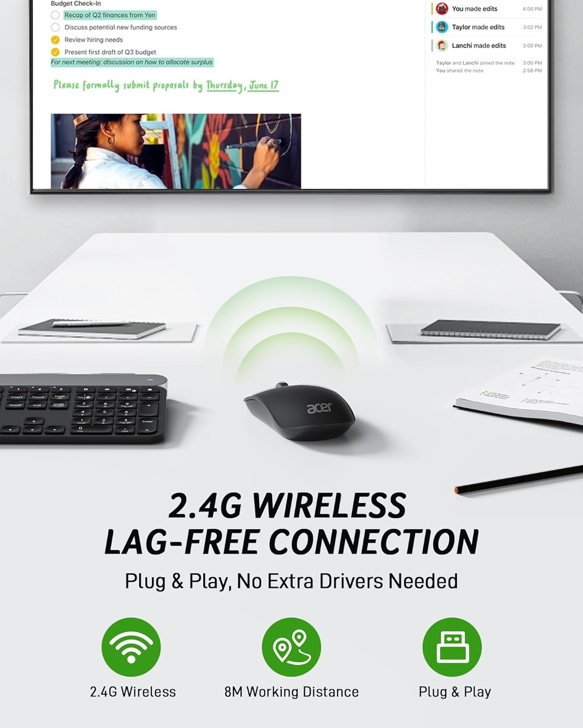 acer Wireless Mouse, Computer Mouse Wireless with 2.4GHz USB Receiver, 800/1200/1600 Adjustable DPI Portable Ultra-Slim Mice with 4 Buttons, Lightwight, Compatible with Laptop, MacBook, Desktop, PC