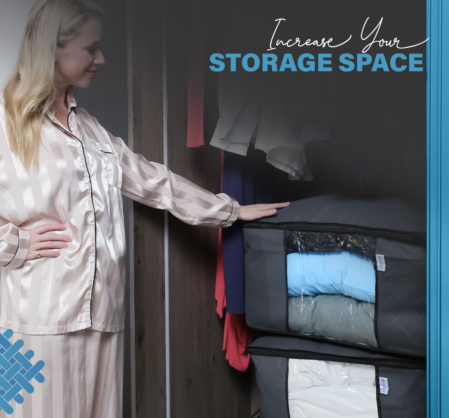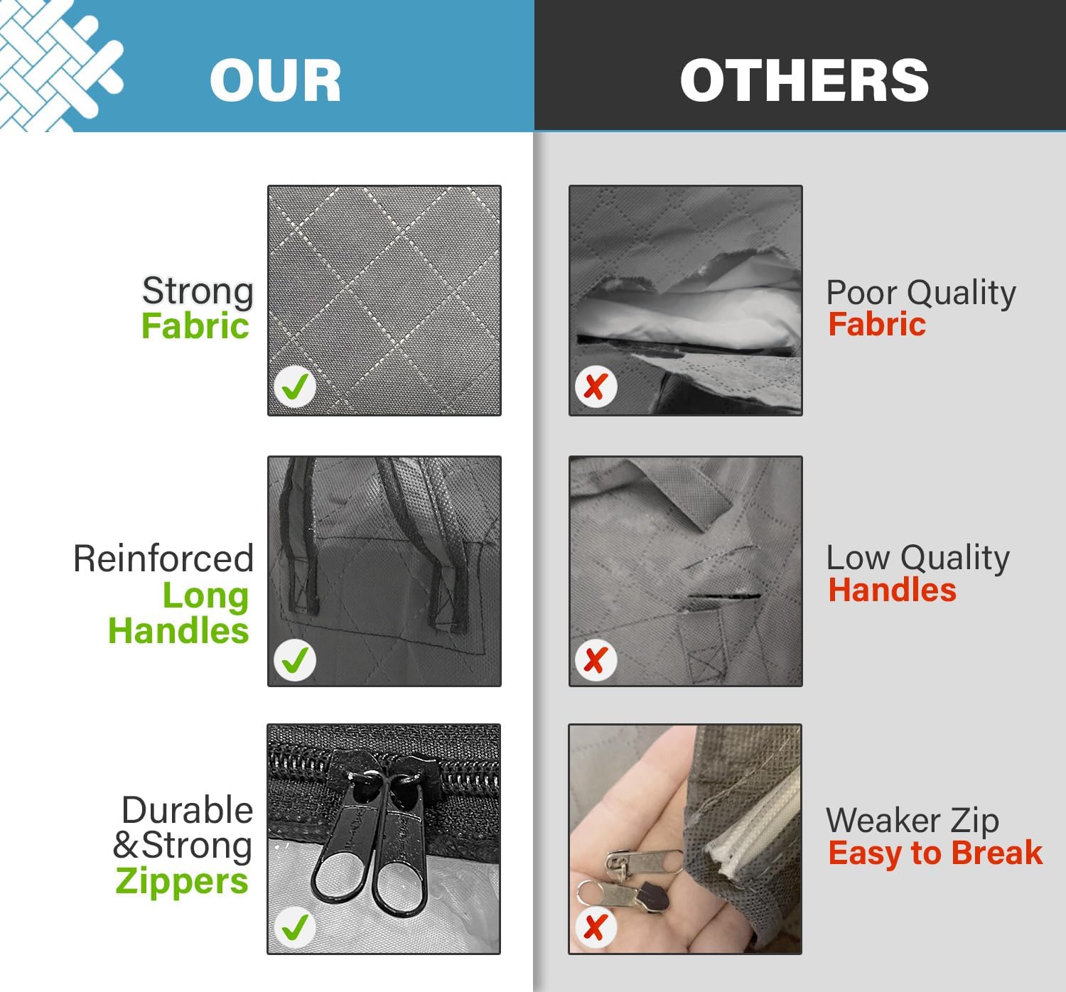 ✔️ Reinforced, Durable Handles: Our clothes storage bags feature double-layered reinforced handles for maximum strength and comfort. Carry your large clothes storage boxes with confidence, knowing the handles are designed to handle heavy loads without strain