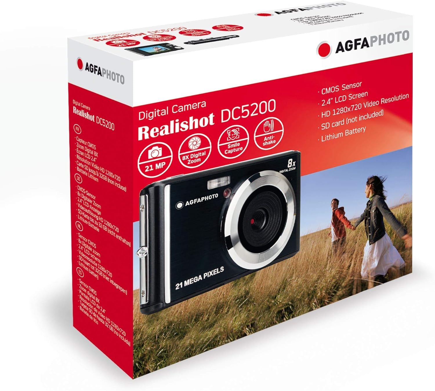 AGFA PHOTO Realishot DC5200 – Compact Camera, 21MP, 2.4″ LCD Screen, 8x Digital Zoom, 720p HD Video, Lithium Battery, SD Cards, Scene Modes – Black