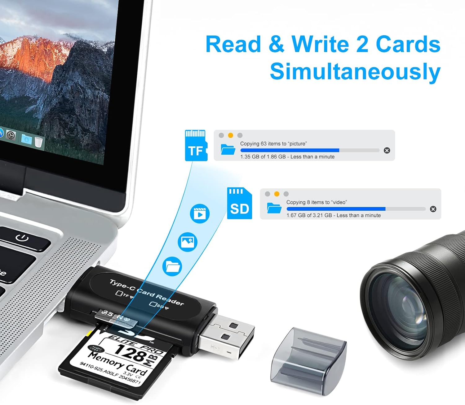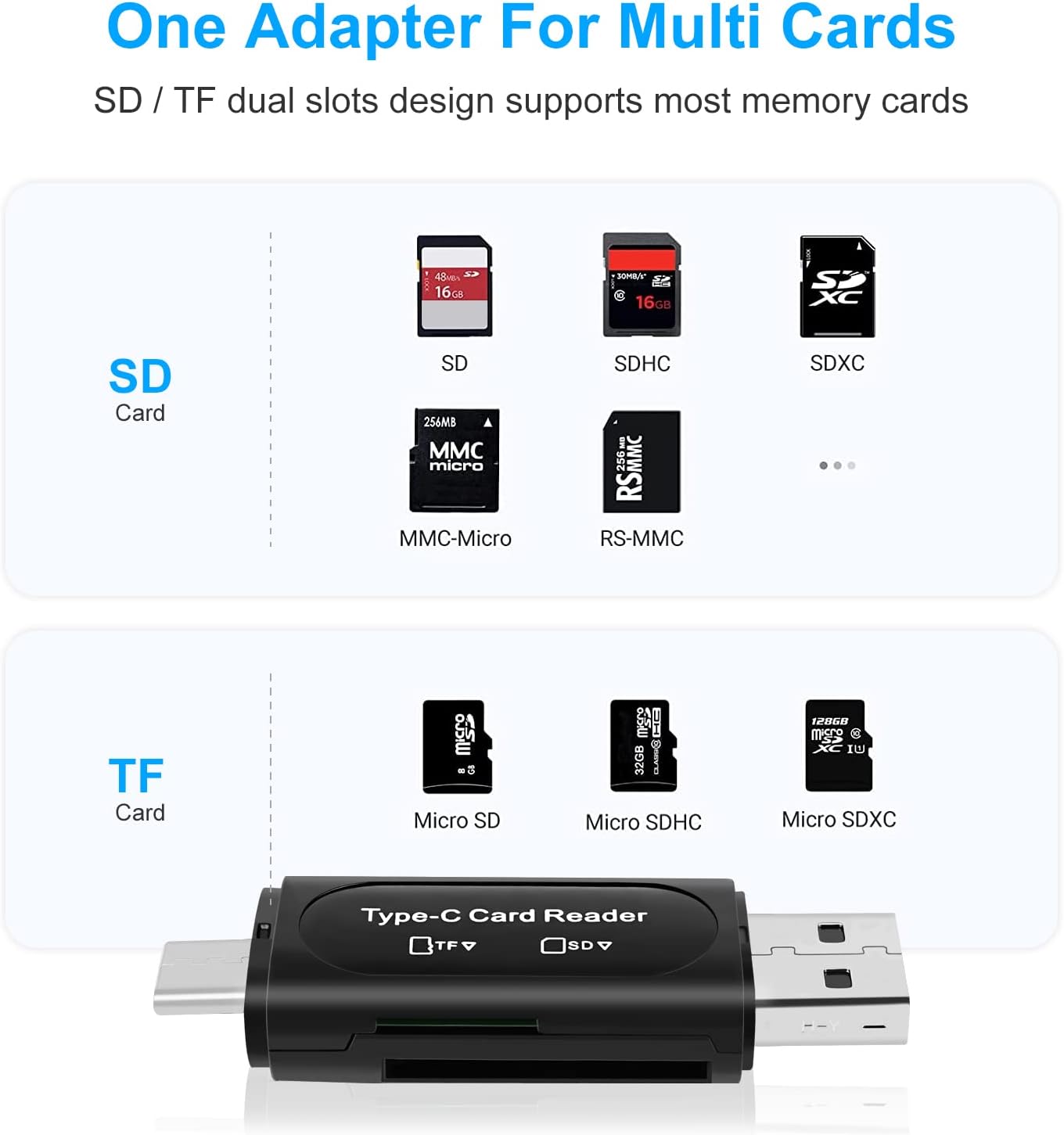 【Plug and Play】No additional software assistance is required, Plug the card reader directly into your Type C / USB A device, and it can be used immediately