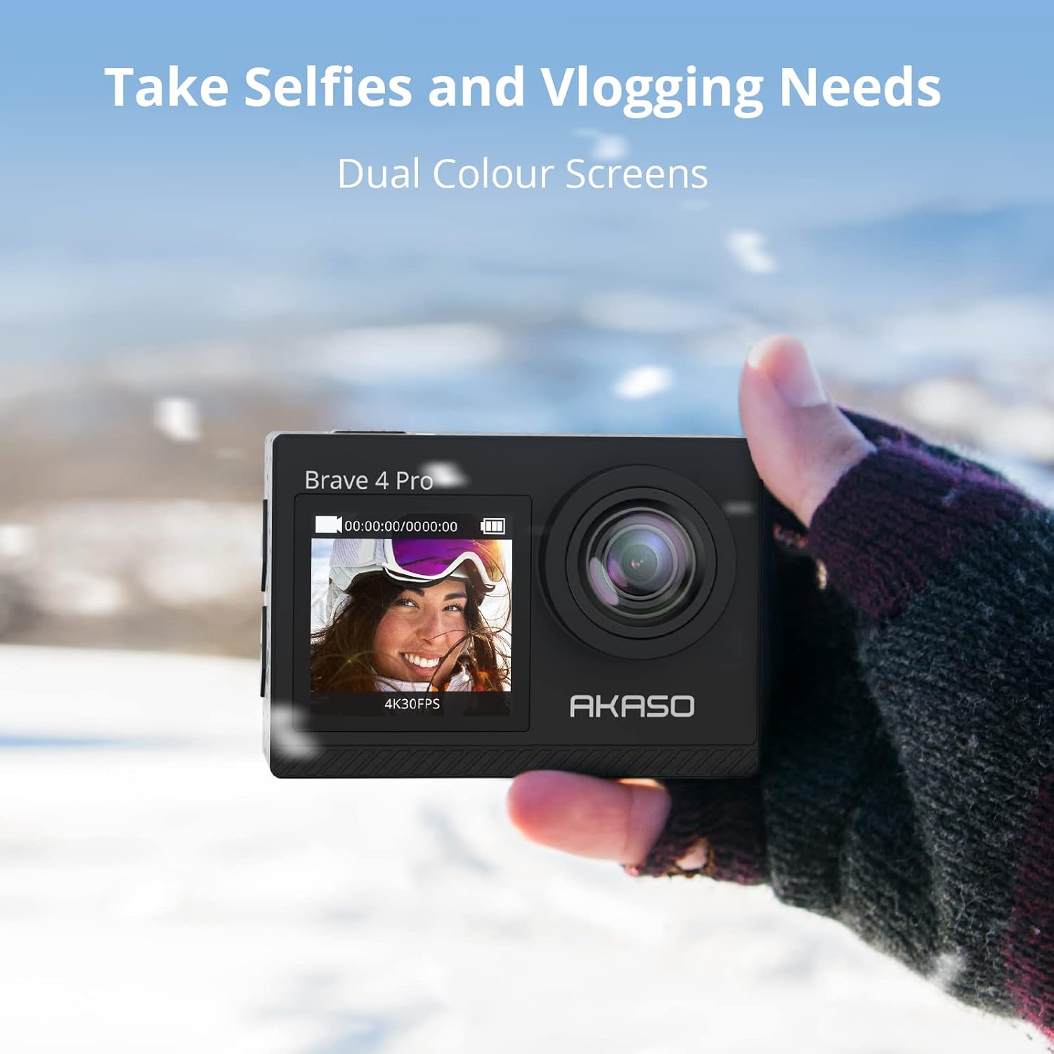 📸CONVENIENT DUAL-DISPLAY – AKASO Brave 4 Pro with innovative dual-color screen design, you can change framing and monitoring views between back and front, especially the vivid front screen can satisfy your selfie need, and the 2-inch back touch screen makes it easy to use than ever.
