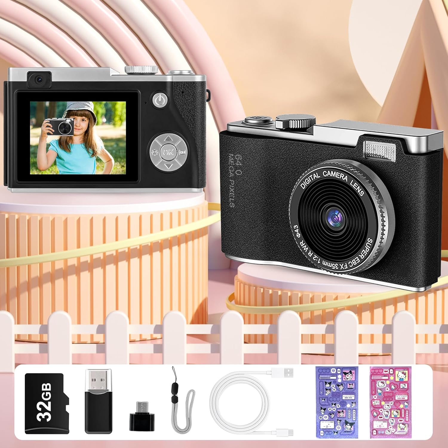 AKOFIC Kids Digital Camera – 1080P HD 2.4 Inch Screen, 48MP Dual Lens Selfie/Video With 32GB Card for 3-12 Years Old Girls Boys