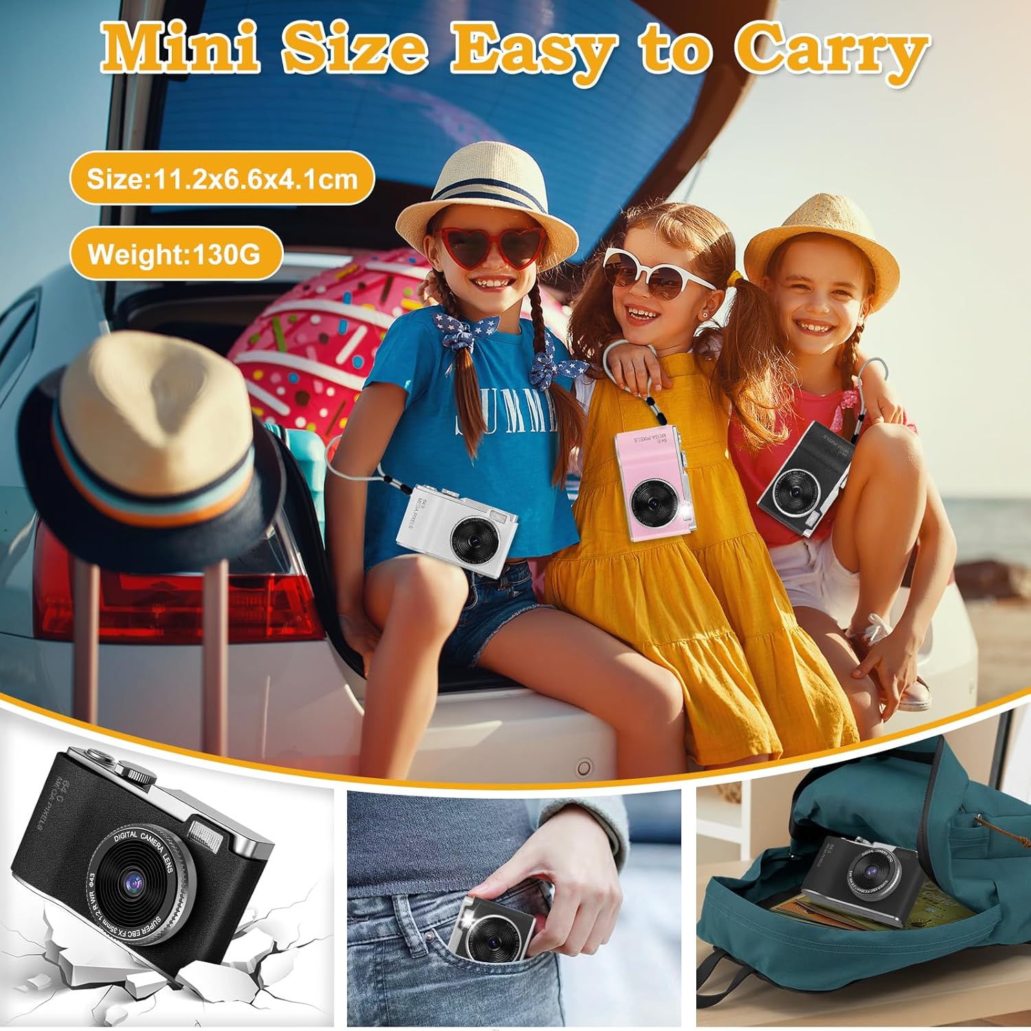 【RETRO DIGITAL CAMERA DESIGN】Adopting the appearance design of a retro digital camera, this kid’s camera aims to provide children with a realistic digital camera experience. It offers a fantastic way to stimulate children’s desire for exploration and interest in photography and recording. This cute camera for kids is portable, lightweight, and perfectly sized for kids’ little hands. It comes packaged with a portable lanyard, making it easier to carry and move.