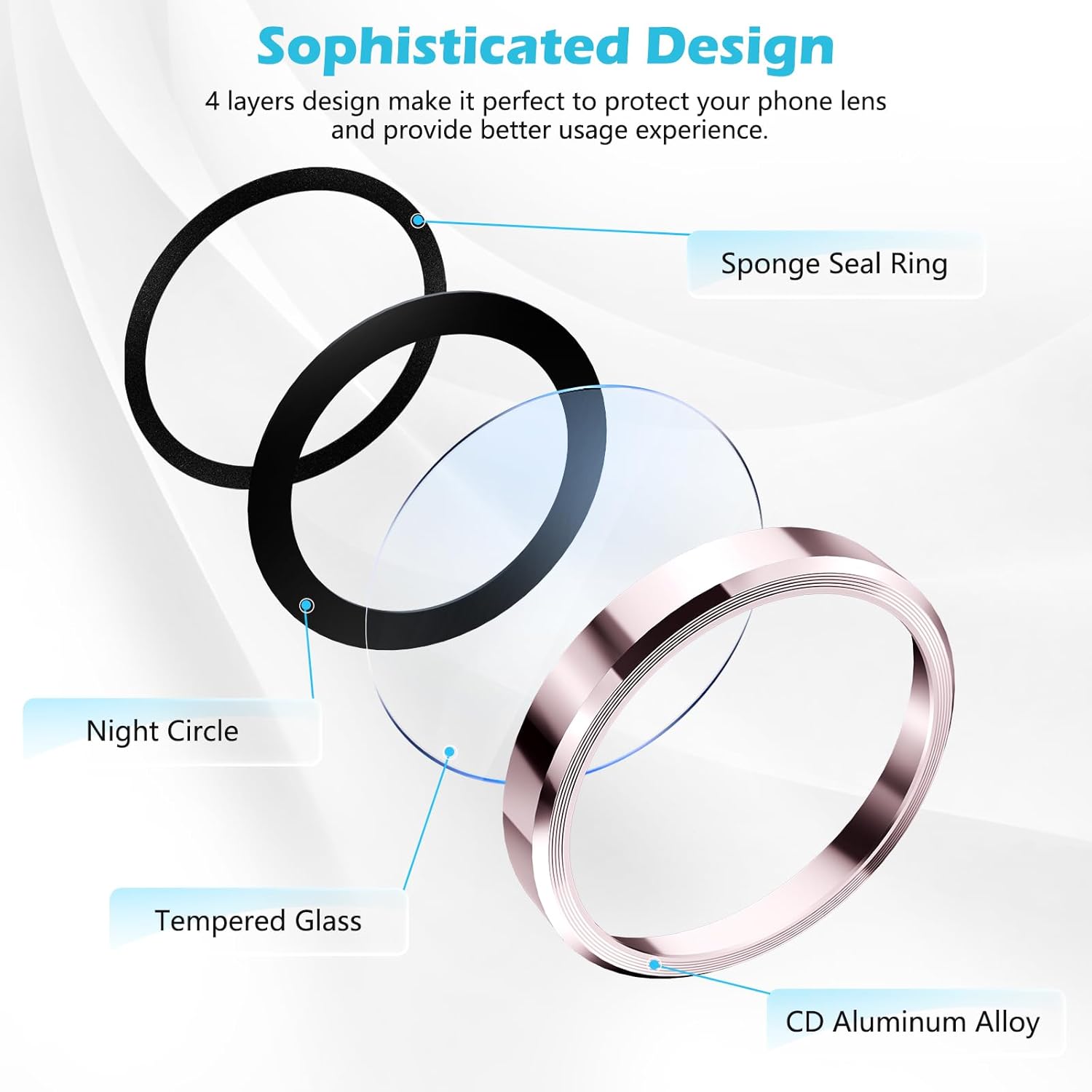 【Premium Protection】 Made of high quality aircraft aluminium metal ring and 9H tempered glass, full coverage from scratches, dust and abrasion. The sealing ring is designed for dust, water and oil resistance. Gorgeously designed aluminium alloy side cover protects your phone lens better than other plastic materials.
