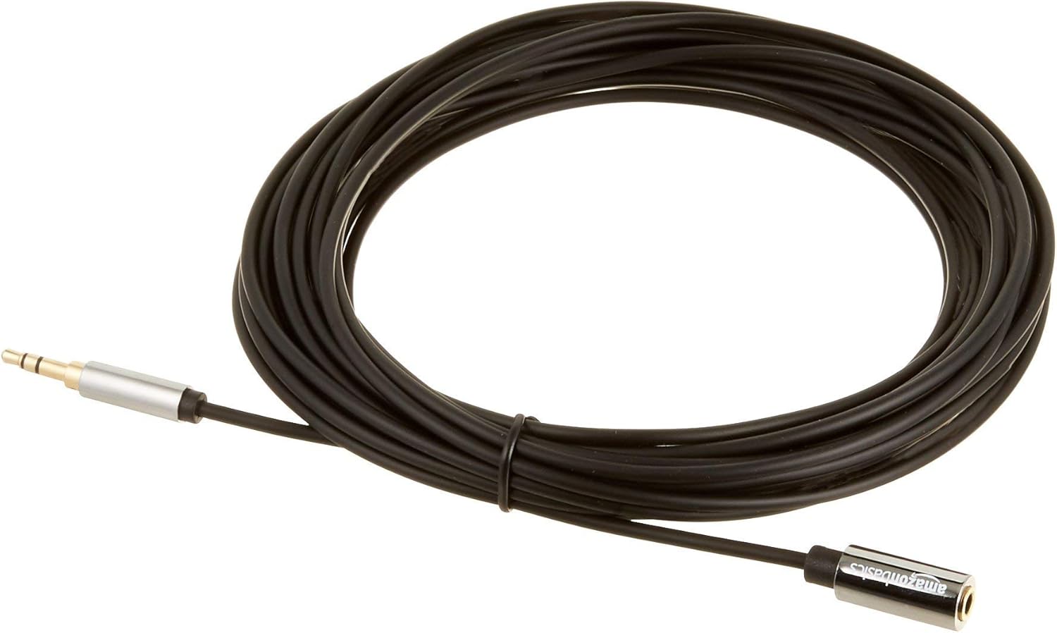 Amazon Basics 3.5mm Auxiliary Jack Audio Extension Cable, Male to Female, Adapter for Headphone or Smartphone, 7.6 m, Black