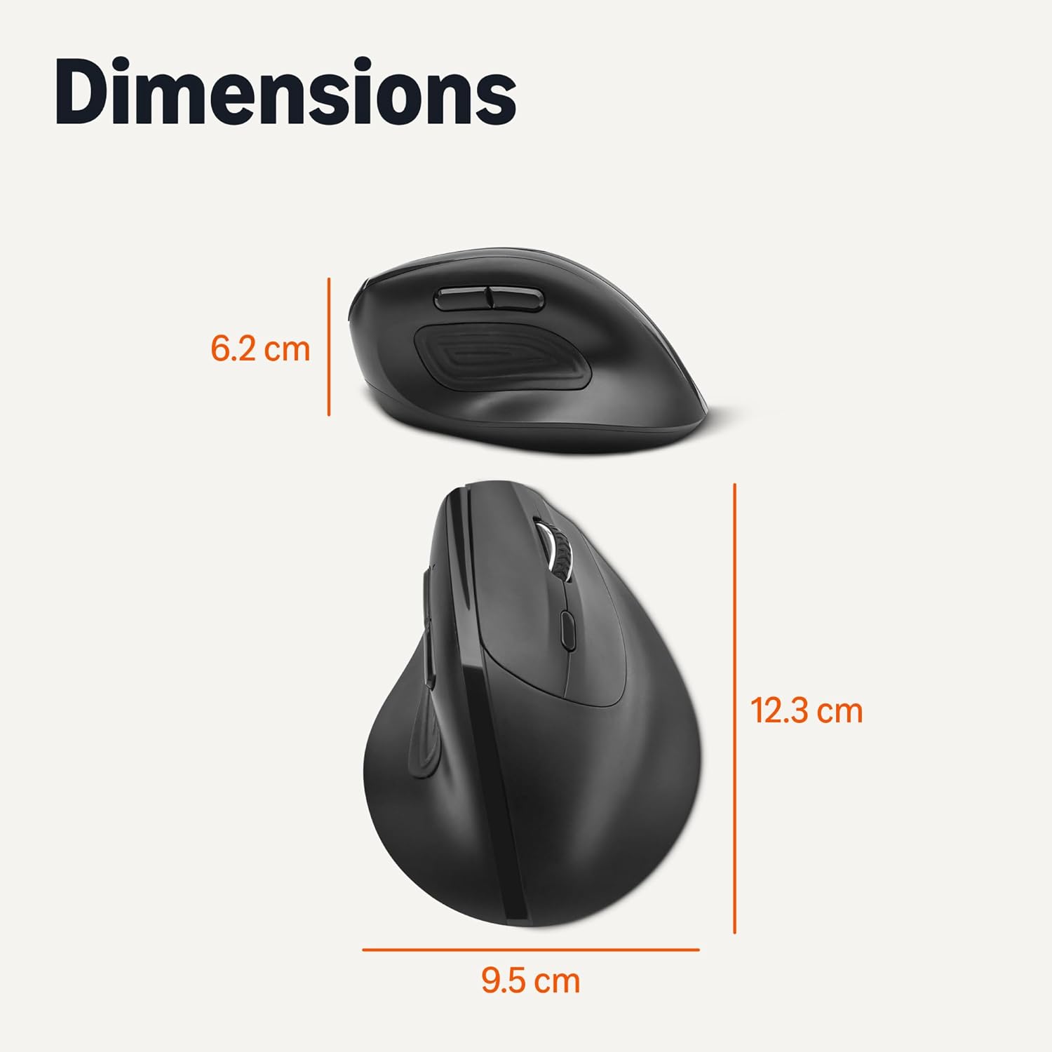 Vertical design offers comfort and natural finger placement. Right-handed orientation optimized for medium to large hands (palm length > 6.7 in/17 cm, palm width > 3.2 in/8.1 cm)