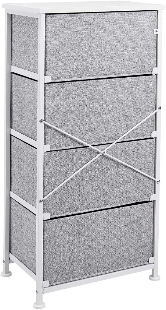 Extra Storage: 4-drawer unit with durable steel frame, removable & lightweight fabric drawers and laminated wood top shelf