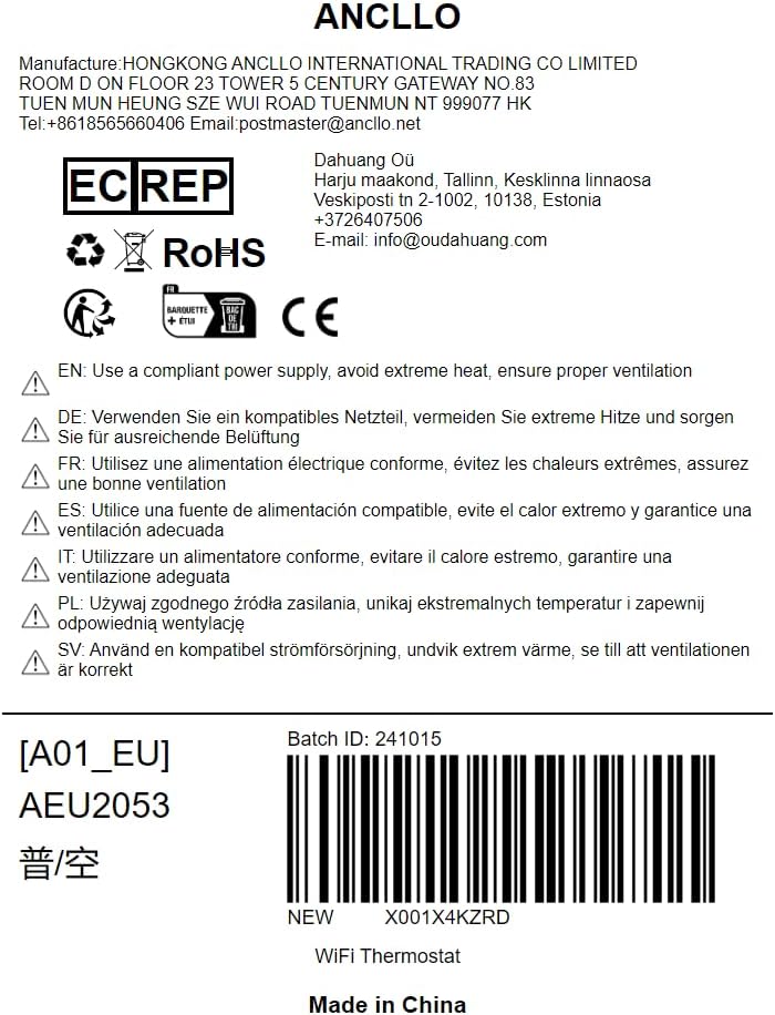 Be the first to review “ANCLLO WiFi Smart Thermostat Save Energy Digital Room Thermostat Underfloor Heating Temperature Controller for Electric Heating”