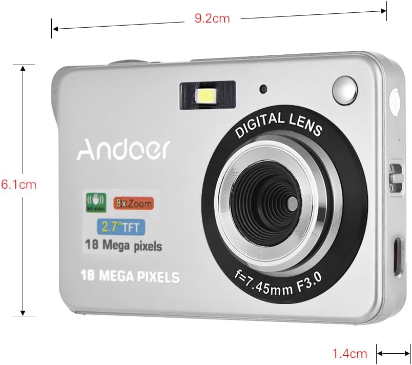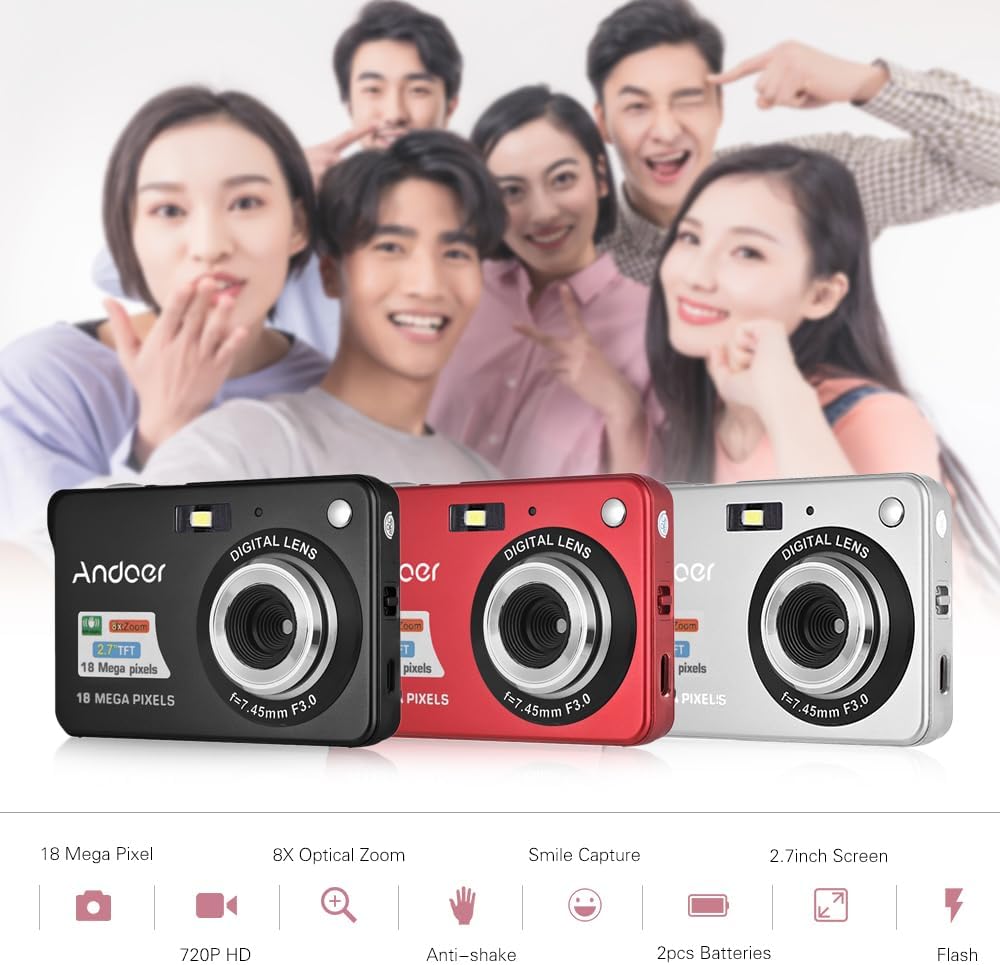 Andoer Digital Camera With 2Pcs Rechargeable Batterie 18M 720P Hd Digital Camera Video Camcorder Digital Camera For Kid Compact Digital Camera 8X Digital Zoom Anti-Shake 2.7Inch Lcd Kid