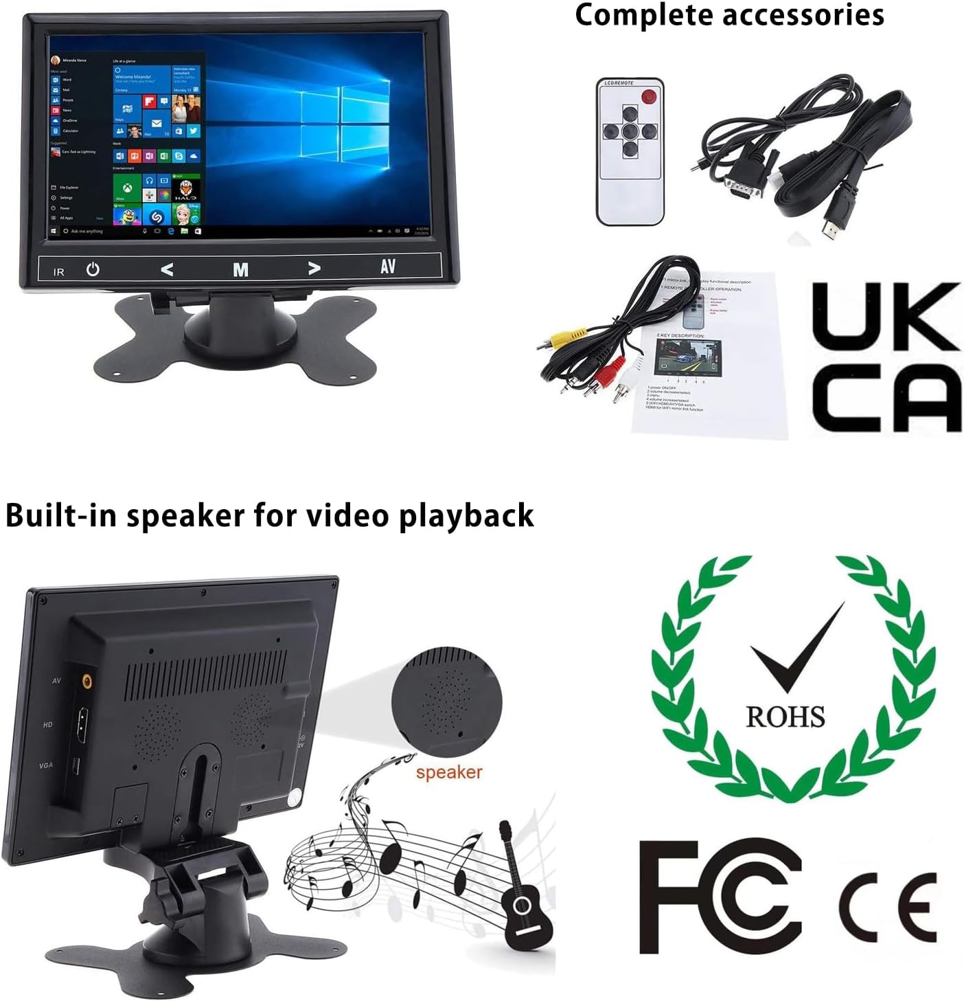 ANDUBEST CCTV Small Monitor 7 inch, 1024X600, 60Hz, 5ms Built-in Speakers, Small Screen w/VGA/AV/HDMI Input,Raspberry Pi Monitor w/Remote Control, Portable Monitor