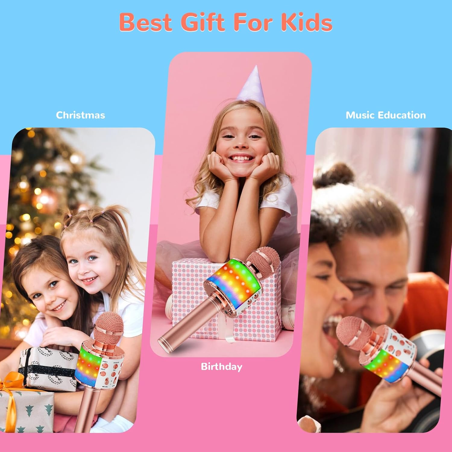 Ankuka Karaoke Wireless Microphone, 4 in 1 Handheld Bluetooth Microphones Speaker Karaoke Machine with Dancing LED Lights, Home KTV Player Compatible with Android & iOS Devices, Rose Gold
