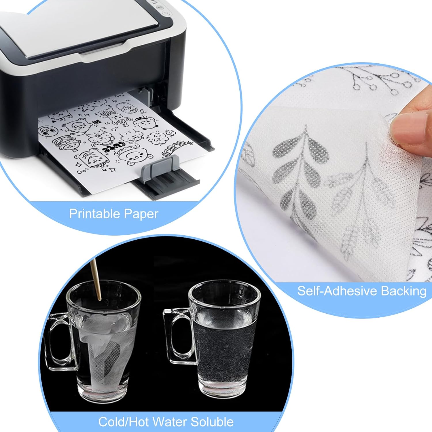💡 PRINTABLE AND HAND-DRAWN: This water-soluble stabilizer can be scanned and printed, allowing you to easily import complex patterns and ensure accurate dimensions. You can also hand-draw your favorite designs using the included water-soluble pens, making the creative process fast and convenient.
