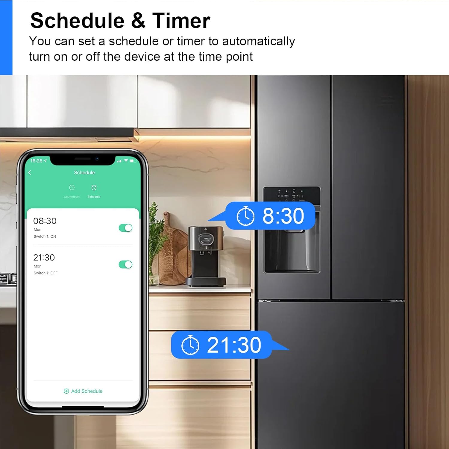 ใSCHEDULE AND TIMERใWith our smart wifi plug, you can easily create and manage schedules for all your household appliances, making your life convenient and eco-friendly. On the mobile app, you can easily set up schedules to turn on/off devices at specific time, saving time and reducing energy consumption.