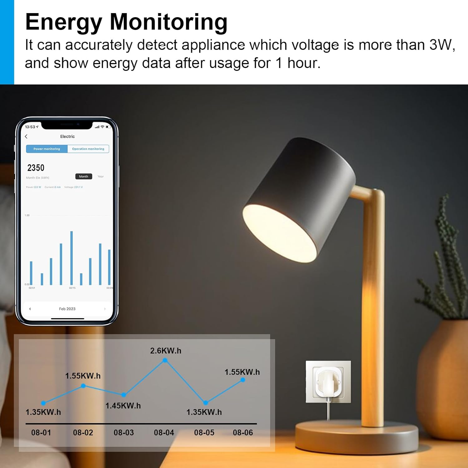 ANTELA Smart Plug with Energy Monitoring, 2,4GHz WiFi Plug with Timer Function, Alexa Voice Control, Smart Life APP Wireless Remote Control, Compatible with Alexa and Google Home, 13A, 4PCS
