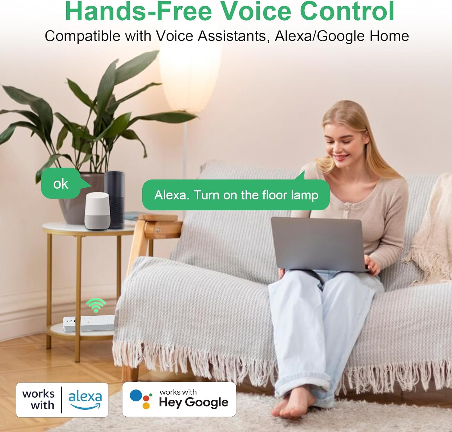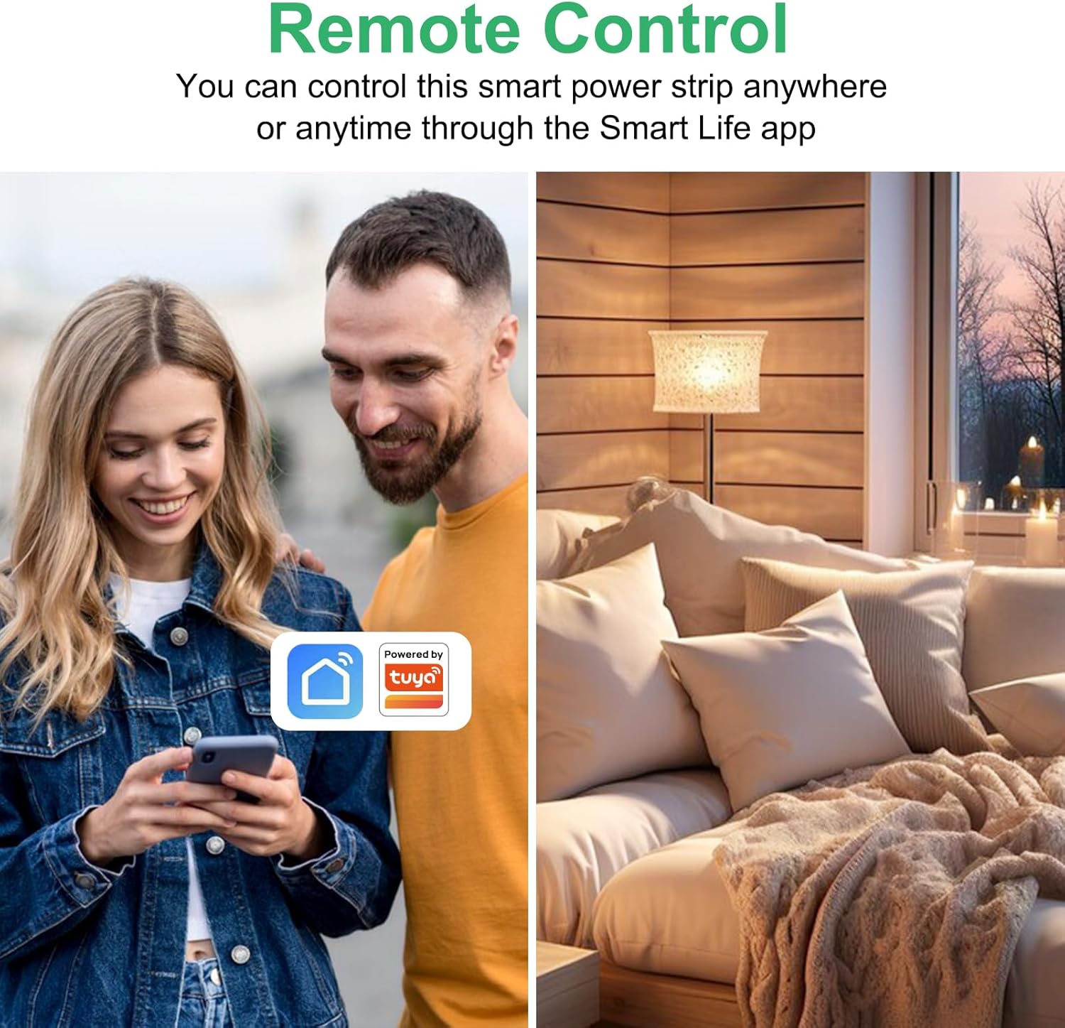 ใRemote App and Voice ControlใThis smart power strip is compatible with Google Home and Alexa, which can control your home appliances by simply giving voice commands to the Assistant. No Hub is required. You can also use free Smart Life and Tuya APP to control home devices from anywhere anytime with internet access. Note: only works with 2.4GHz WiFi.