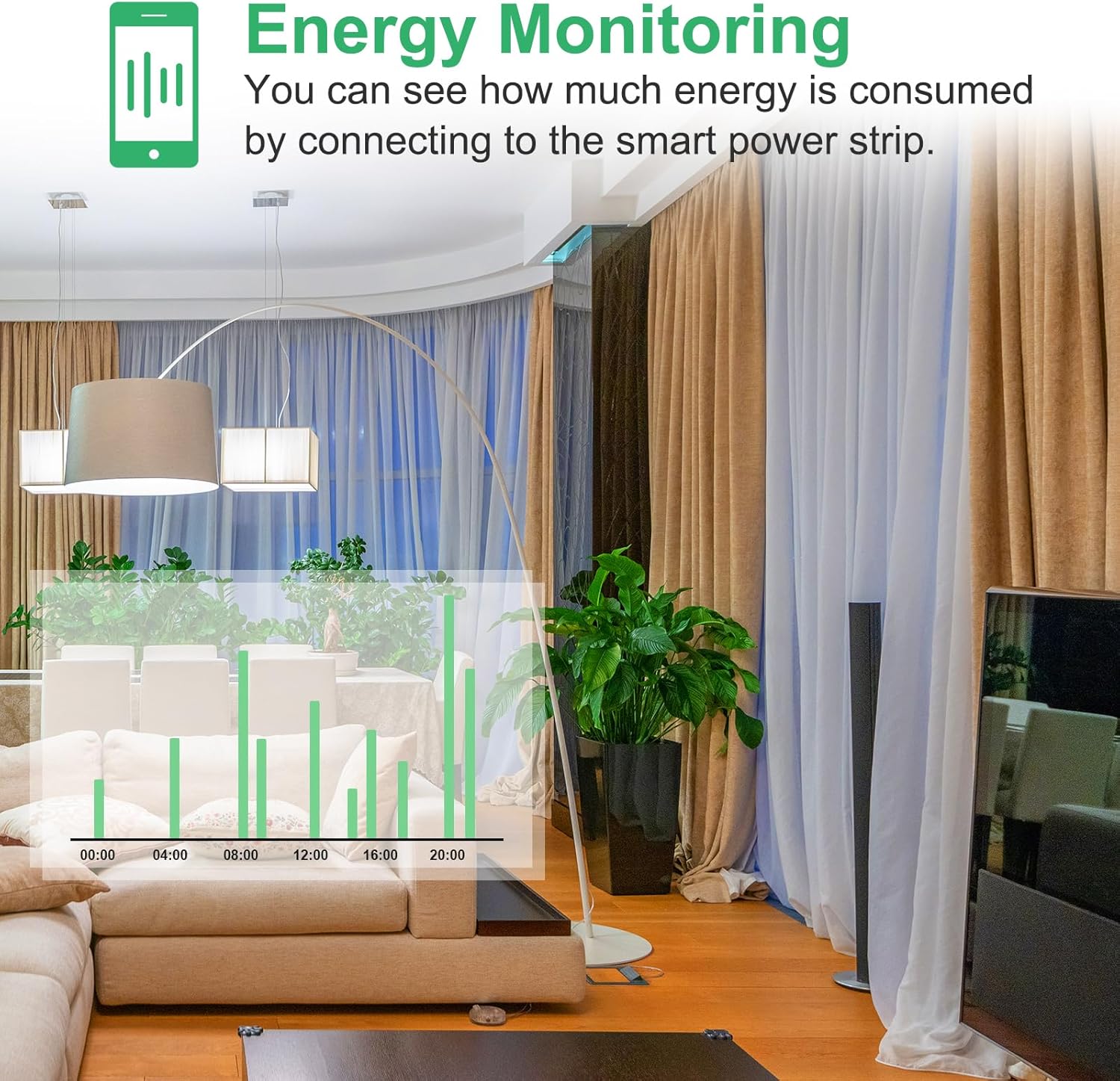 ANTELA Smart Power Strip Energy Monitoring, Wifi Smart Extension Lead with 3 Outlets+3 USB Ports (2 USB A+1 USB C), Work with Alexa, Google Home, Voice Control, Smart Life App, 1.5M, 2.4GHz, 13A