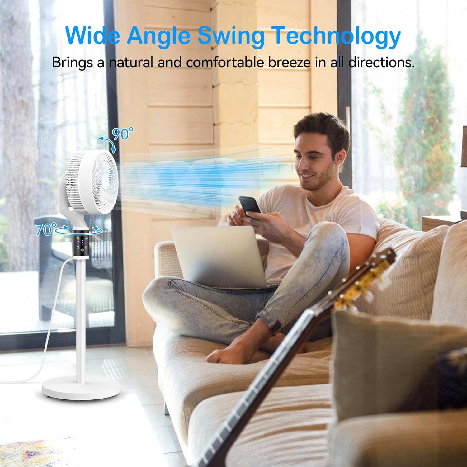 【Air Circulation Pedestal Fan】Our stand fan has a 70° wide and 90°The vertical swing function allows the wind to blow from different angles, forming air circulation throughout the room, keeping the air in your home fresh, and providing you with natural and comfortable coolness in the hot summer.