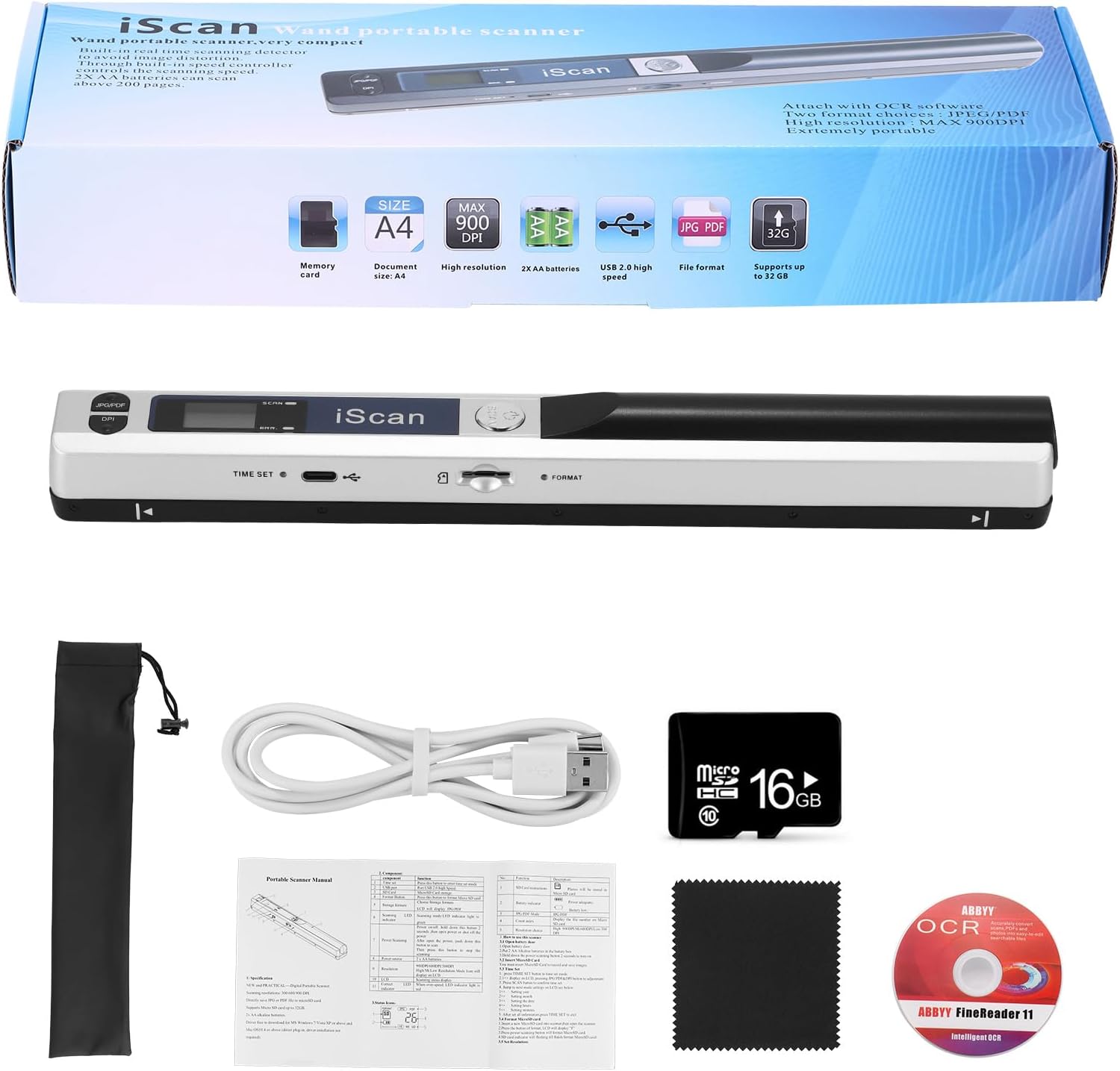 6 reviews for AOZBZ Portable Scanner, 900DPI USB Handheld Document Scanner for JPG PDF Format with 16GB Micro SD Card TF Card(White)
