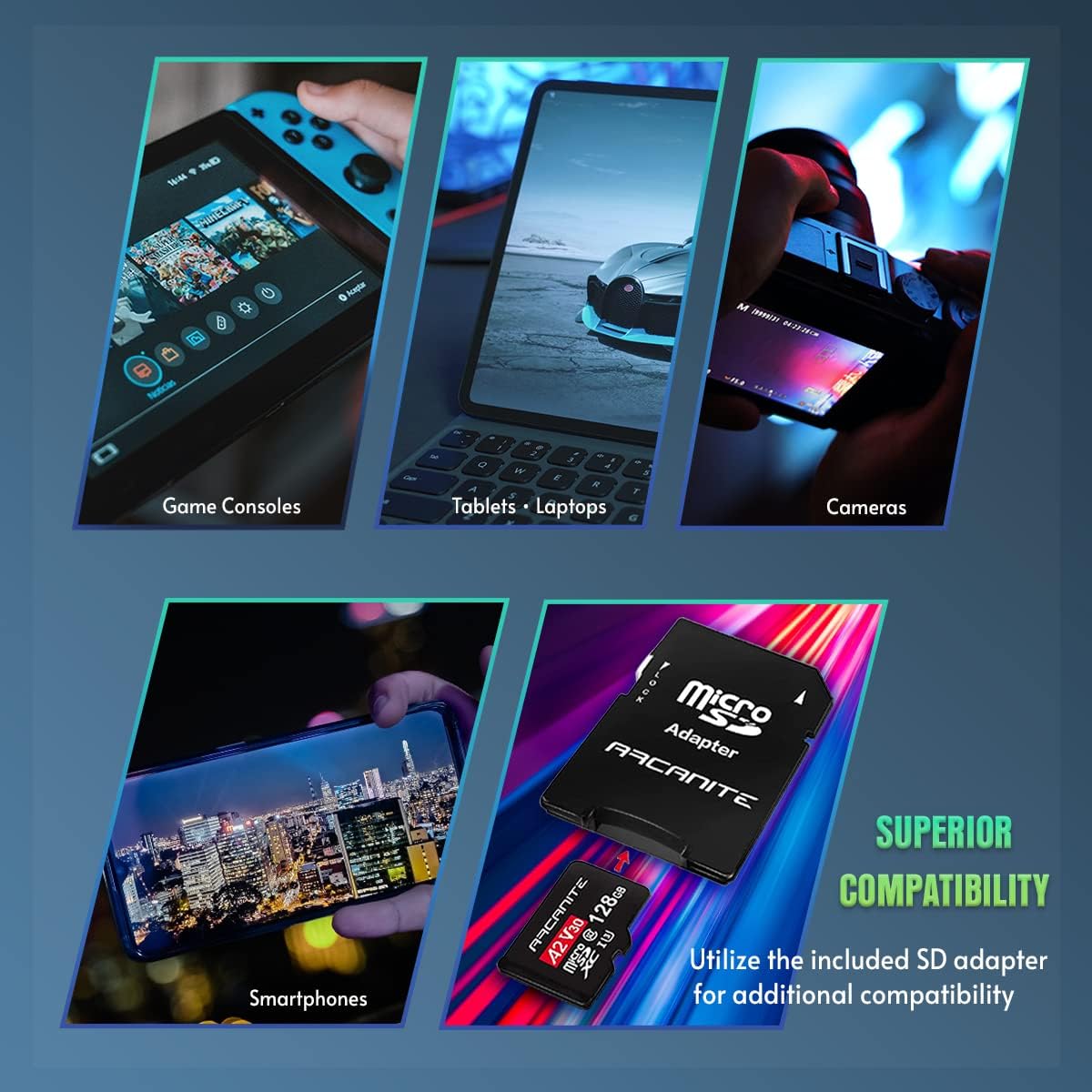 ARCANITE 128GB microSDXC Memory Card with Adapter – A2, UHS-I U3, V30, 4K, C10, Micro SD, Optimal read speeds up to 95 MB/s