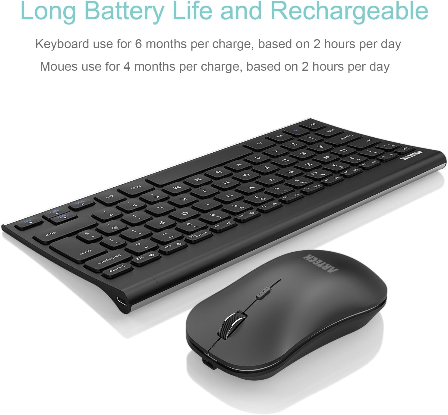 Arteck 2.4G Wireless Keyboard and Mouse Combo QWERTY UK Layout Compact Stainless Full Size Keyboard and Ergonomic Mouse for Computer/Desktop/PC/Laptop and Windows 10/8/7 Build in Rechargeable Battery
