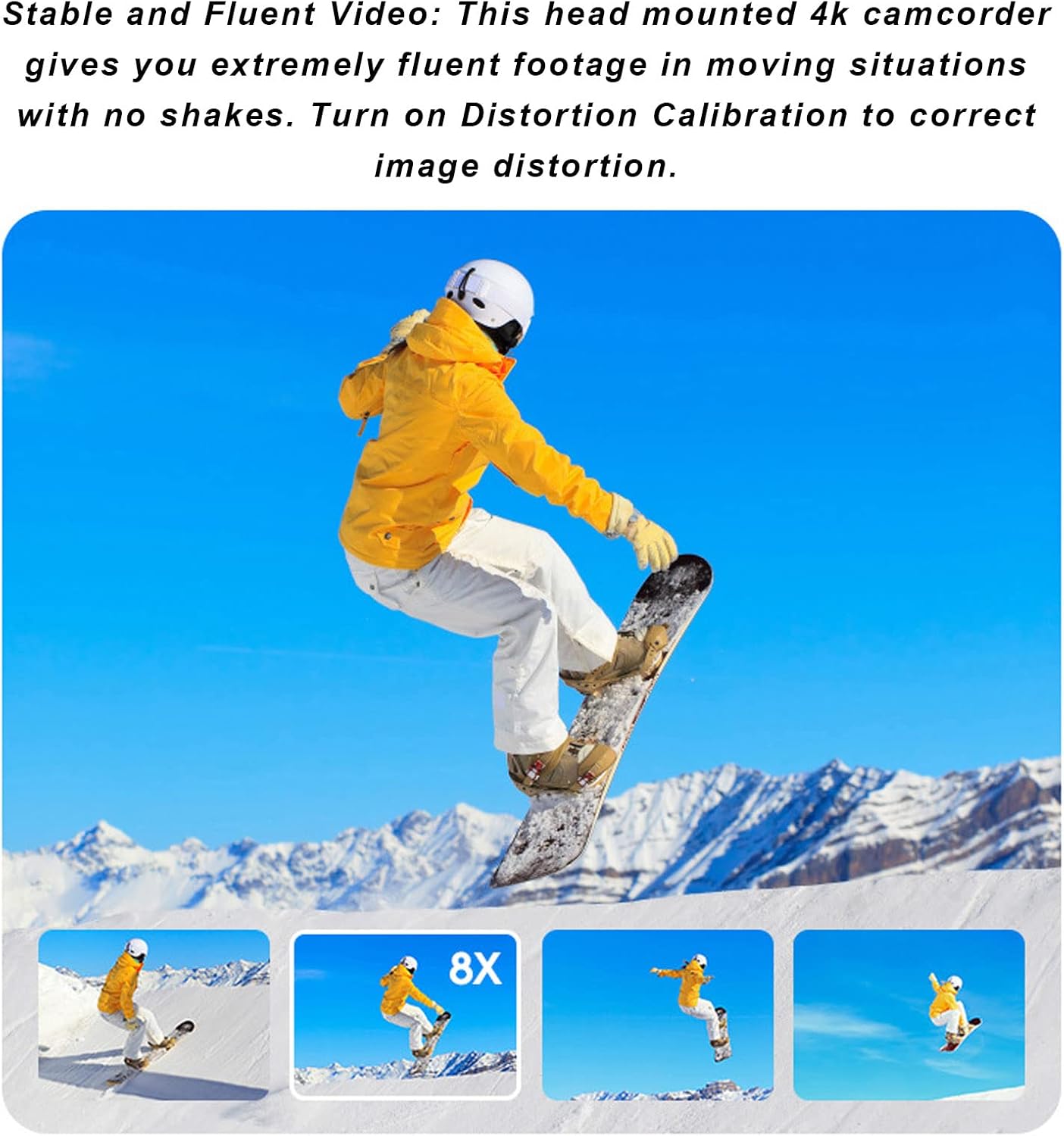 Stable and Fluent Video: This head mounted 4k camcorder gives you extremely fluent footage in moving situations with no shakes. Turn on Distortion Calibration to correct image distortion.
