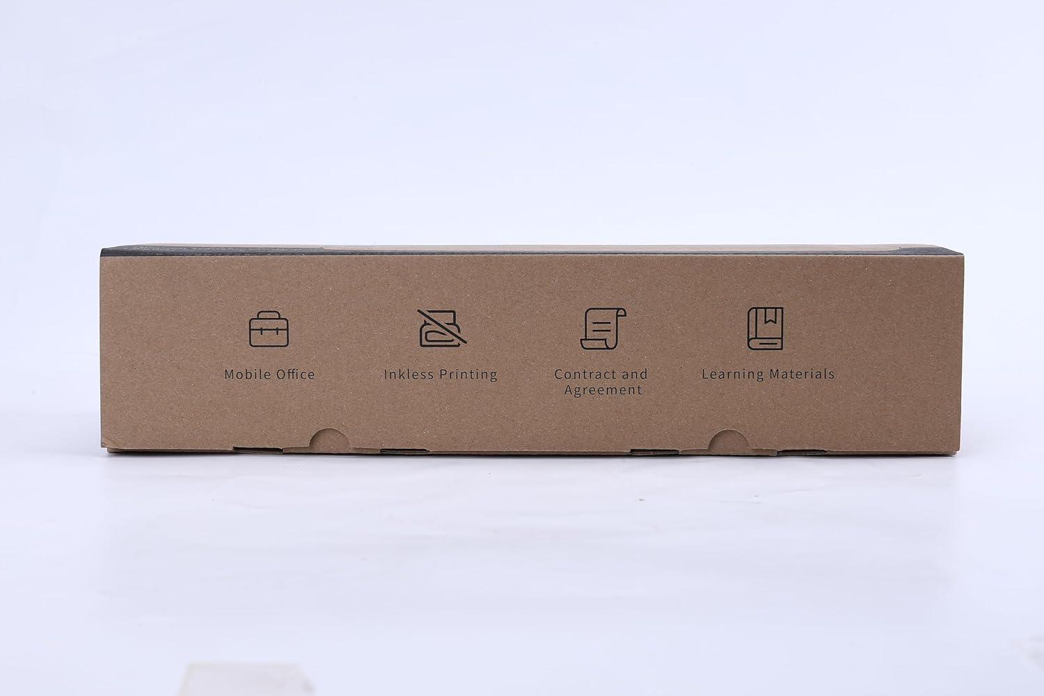 [Powerful Portable Printer] Our portable printer for travel is compact, only 12.1 inches long, and weighs only 1.75 lbs. Able to easily fit into your backpack or suitcase. Our Bluetooth printer also has a 2000MAH capacitance and a Type-C. The portable inkless printer can print 70 sheets of A4 paper on a fully charged, our wireless printer can be quickly recharged anywhere you can find a USB port