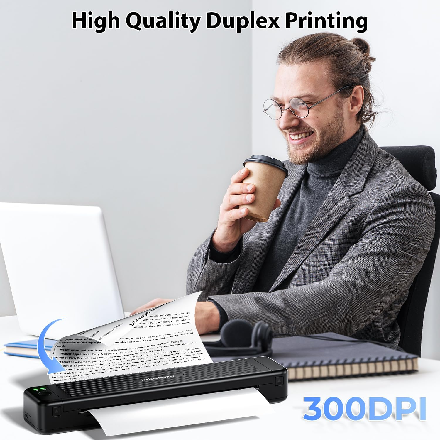 [High-Quality Duplex Printing] Our inkless portable printer has 300DPI more clear printing compared with the general thermal a4 printer only 203DPI. At the same time, this compact printer can duplex printing with more powerful functions