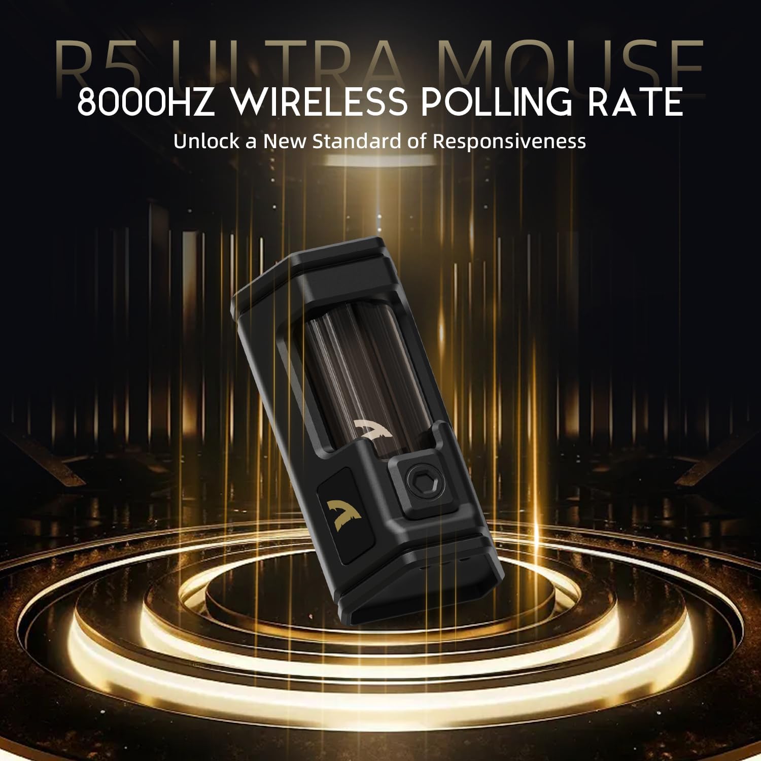 【8000Hz Wireless Polling Rate】The R5 Ultra delivers an impressive 8000Hz polling rate in wireless mode, slashing response time from 1ms at 1000Hz to just 0.125ms. Experience ultra-responsive cursor movements and lightning-fast trigger reactions, giving you the competitive edge you need to dominate when it matters most!