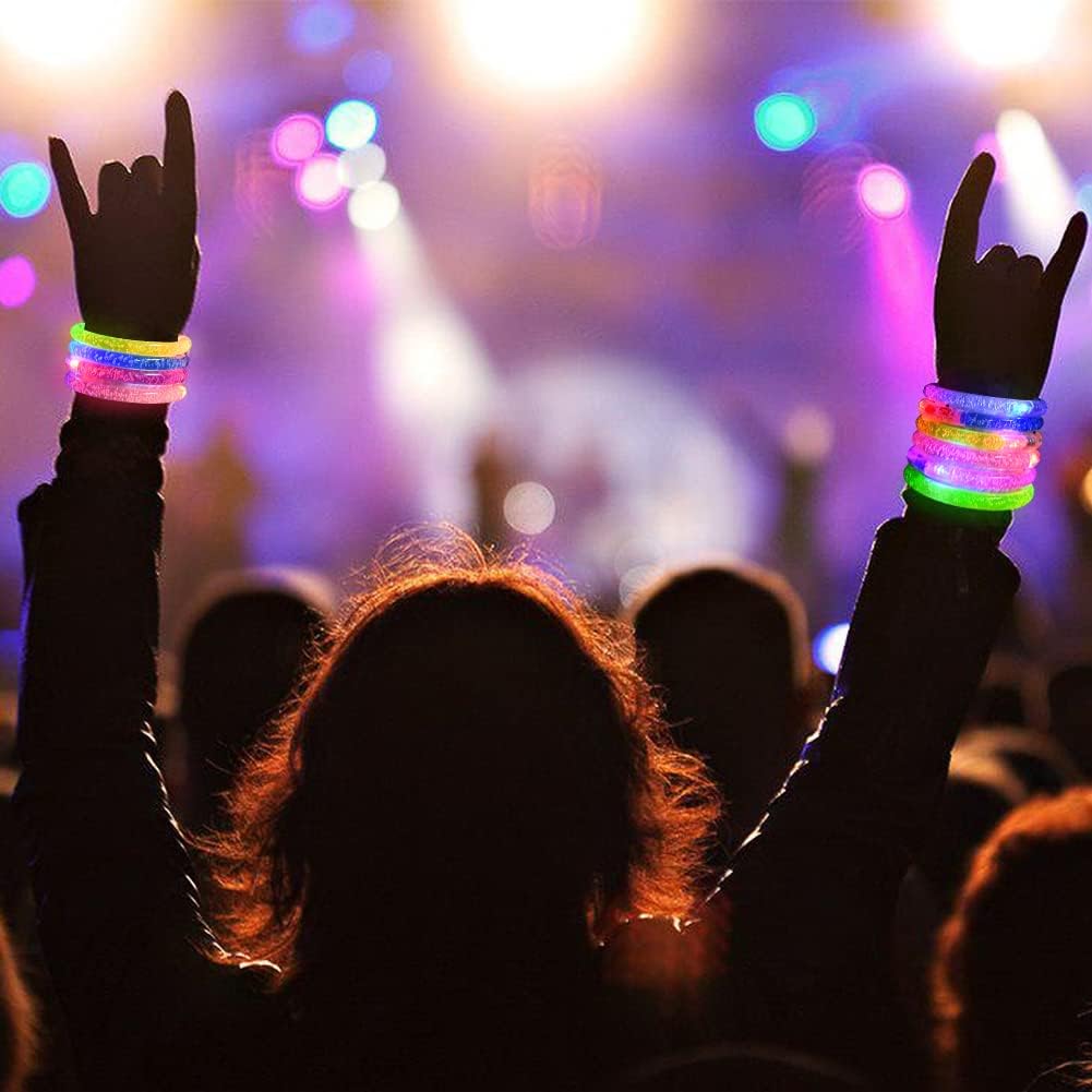 【SAFE & RELIABLE】Made of thick hard PC, the light up bracelets is with the perfect package of batteries, you don’t have to worry about the battery loose, and not to worry that the strong bracelet will break or scratch. Equipped battery meets safety standards and passed multiple tests, 1 sets battery lasts over 5-8 hours, make you be the brightest boy.