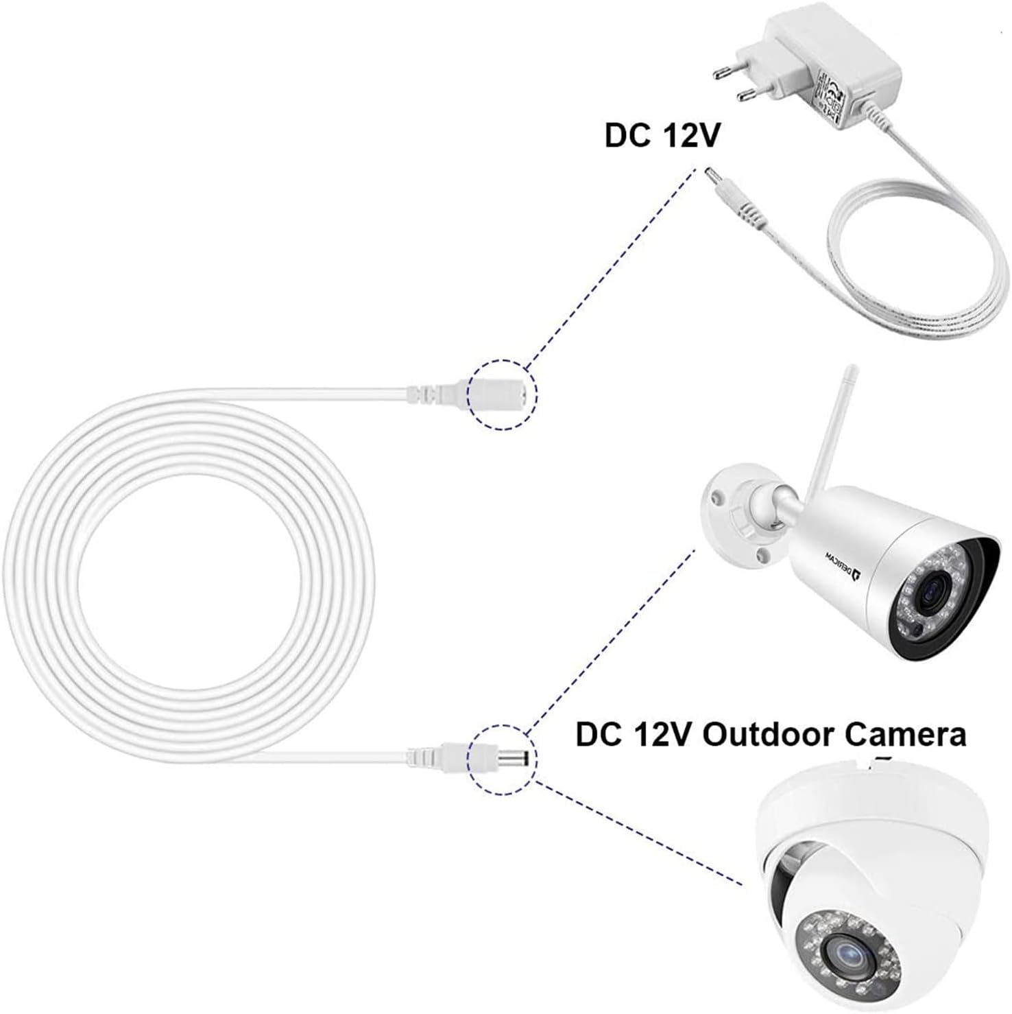 The DC power extension cord is a perfect solution when you find that your device standard power cable is too short to reach the installation spot. You can connect multiple extension cables to reach the wanted location. It work perfectly to power your security camera.
