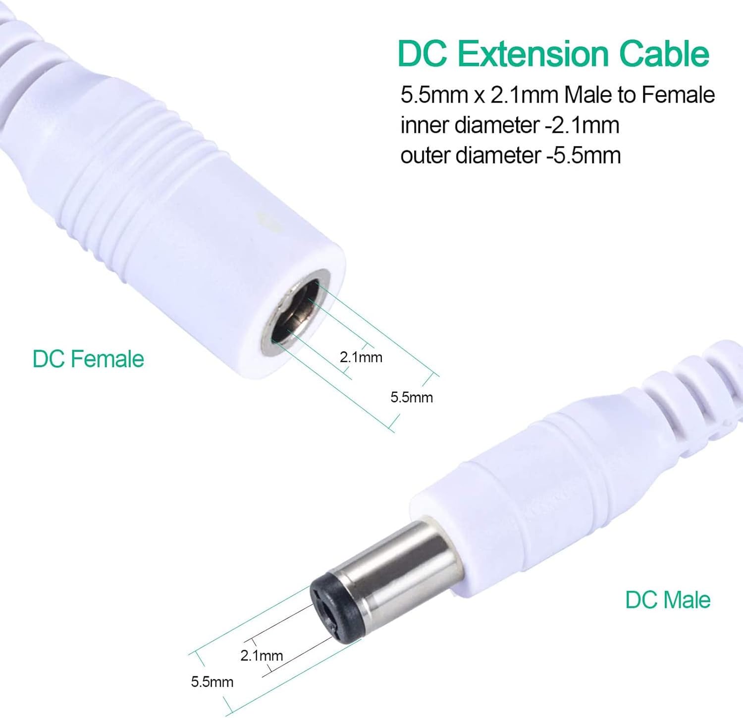 【STRONG COMPATIBILITY】5.5 x 2.1 mm 12V DC Extension cable, Male – Female connectors. The extension cable is suitable for any application that requires DC 12V input and accept 2.1mm x 5.5mm plug. (Not Compatible with other sizes)