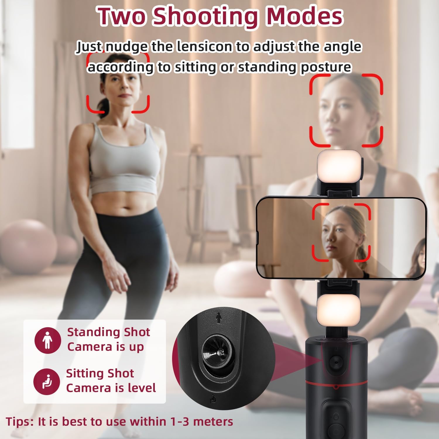 360 Face Tracking AI Technology with Integrated Fill Light: This Auto Face Tracking tripod features cutting-edge AI and high-quality optical lenses for quick and accurate facial or body movement recognition.The fill lights provide adjustable brightness, enhancing your videos by reducing shadows and improving image quality, especially in low-light conditions. It offers dual recognition angles for both standing and sitting positions, ensuring you’re always the center of attention in every frame.
