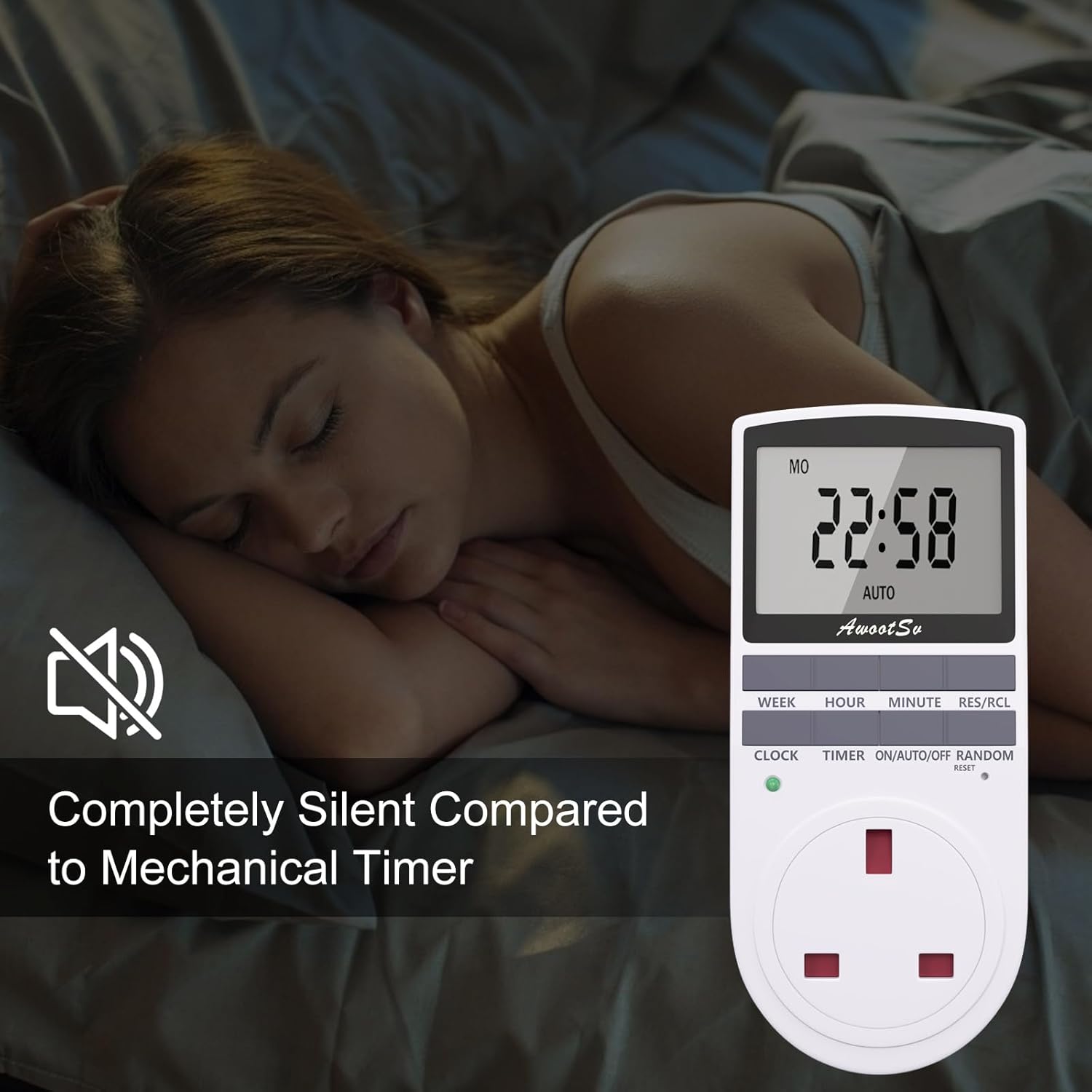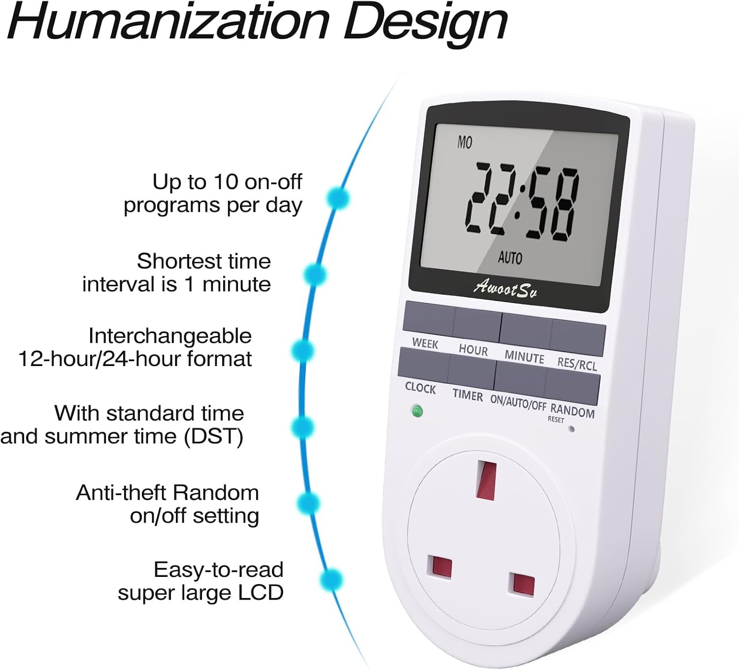 Awootsv Digital Timer Plug Socket with LCD Display 24 Hours/Weekly Indoor Automatic Timer Switch for Lights Plug Socket in Electrical for Home Appliances Timers Socket for Home Security