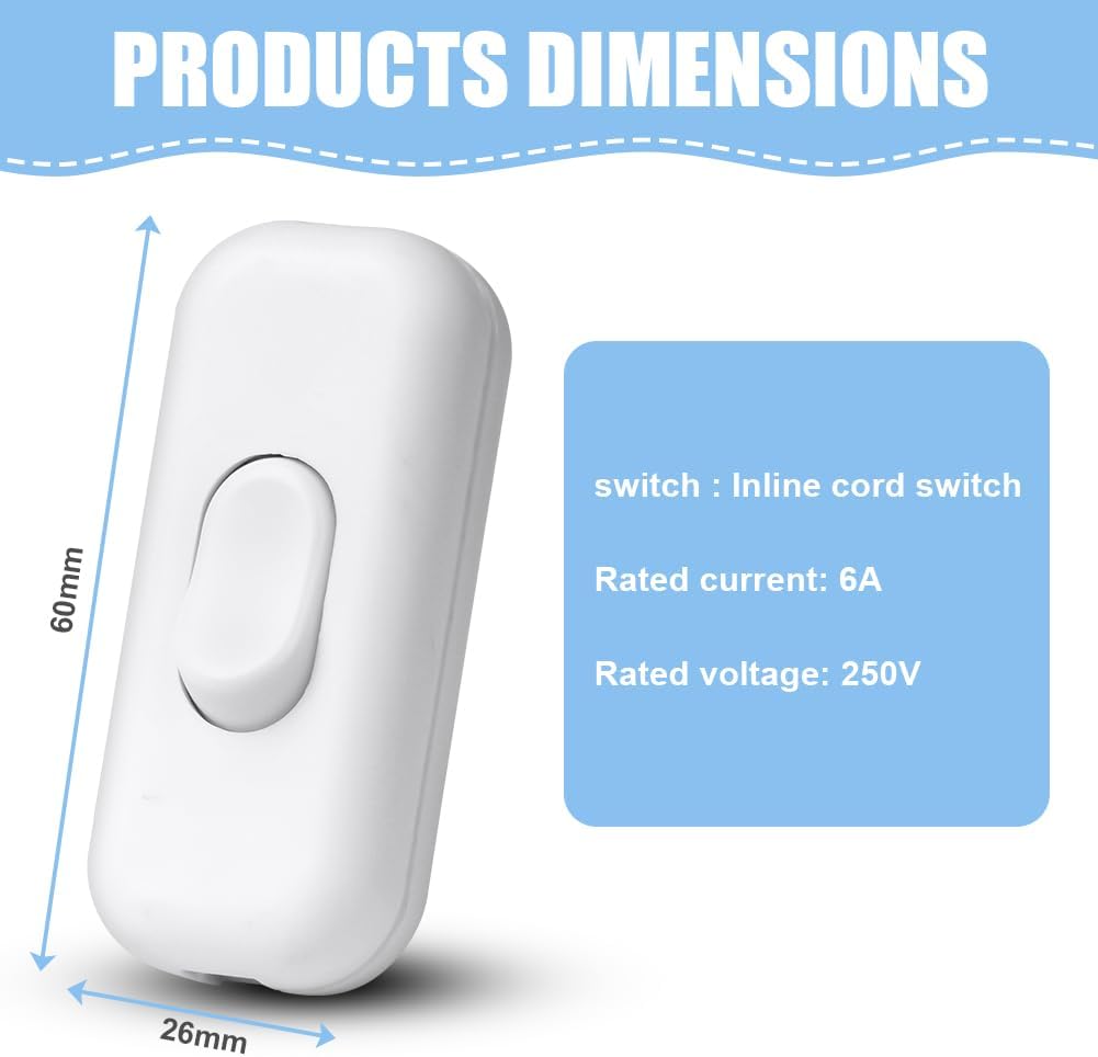 【INSULATION SAFETY MATERIAL】 In-line rocker switch using high-quality PC insulation shell, which is very resistant to aging, wear and heat. It has higher strength impact resistance. Then safer to use and ensures the safety of household electricity.