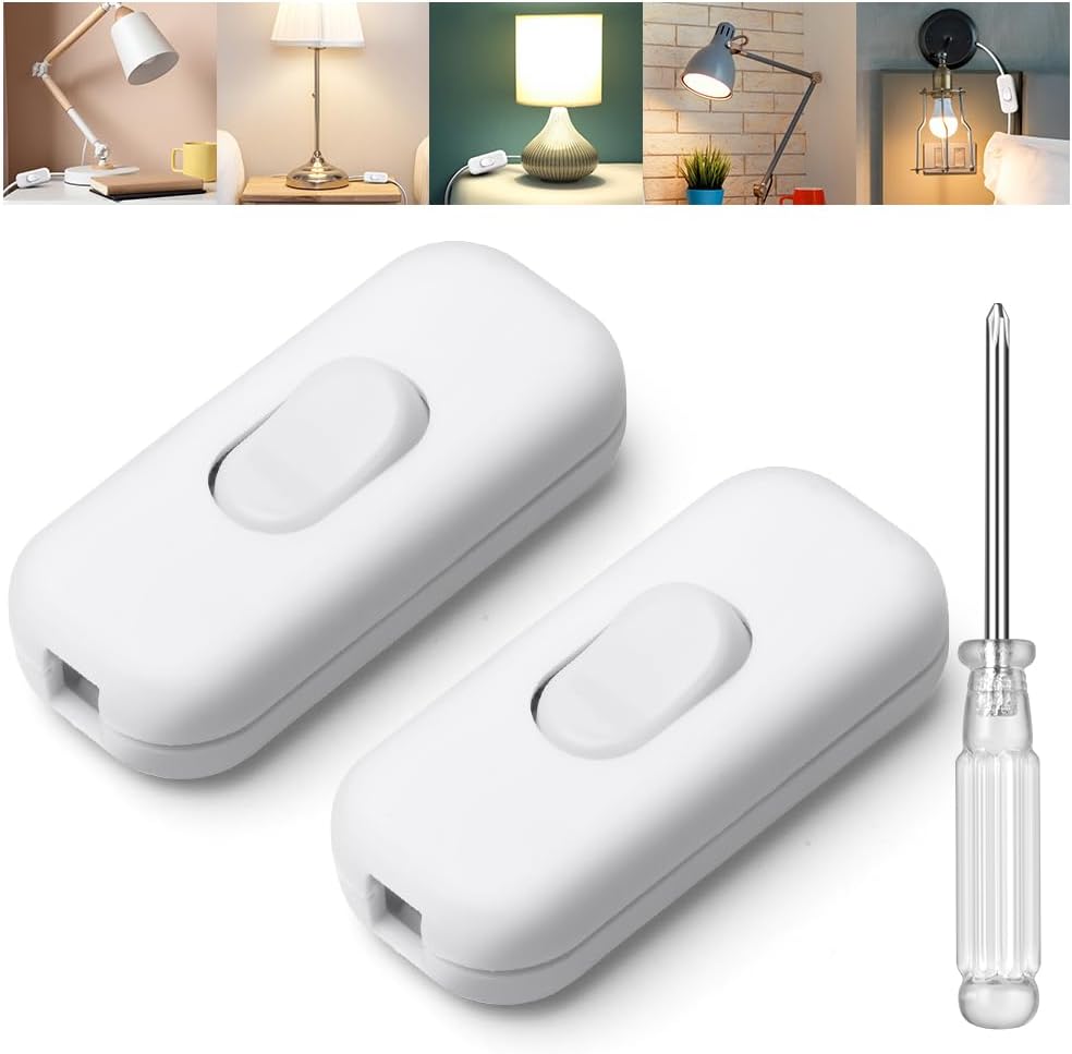 13 reviews for AXFEE 6A Double Pole Inline Cord Switch, 2-Pack Torpedo Switch – 2 or 3 Core, Accepts Round or Flat Wire, 250V for Desk Lamp/Light/Bulb, White