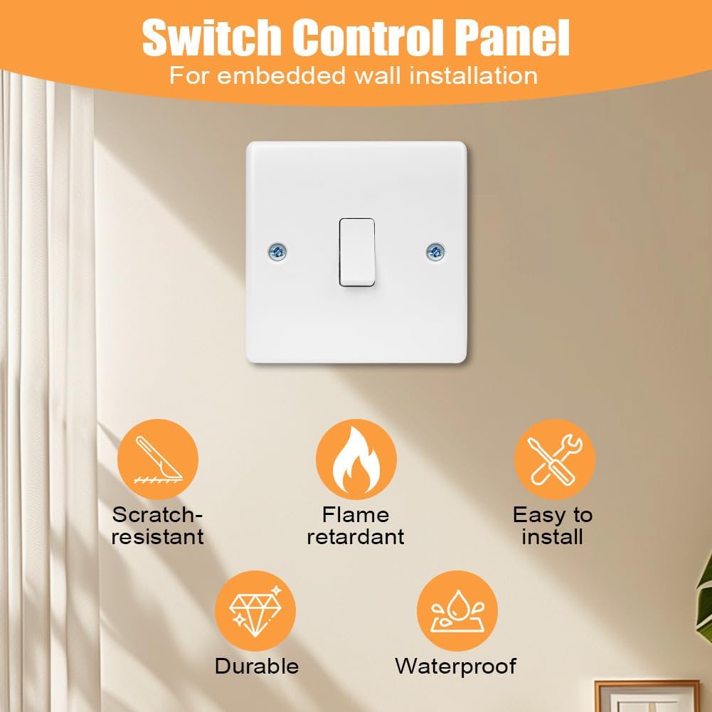【Safety First】Our switch control panel strictly complies with the BS60669-1 standard, and it also integrates multiple protection features such as fireproof, waterproof and anti-electric shock, so you don’t have to worry about the risk of electric shock. Our panel will protect the safety of you and your family around the clock, making your home environment more secure and worry-free.