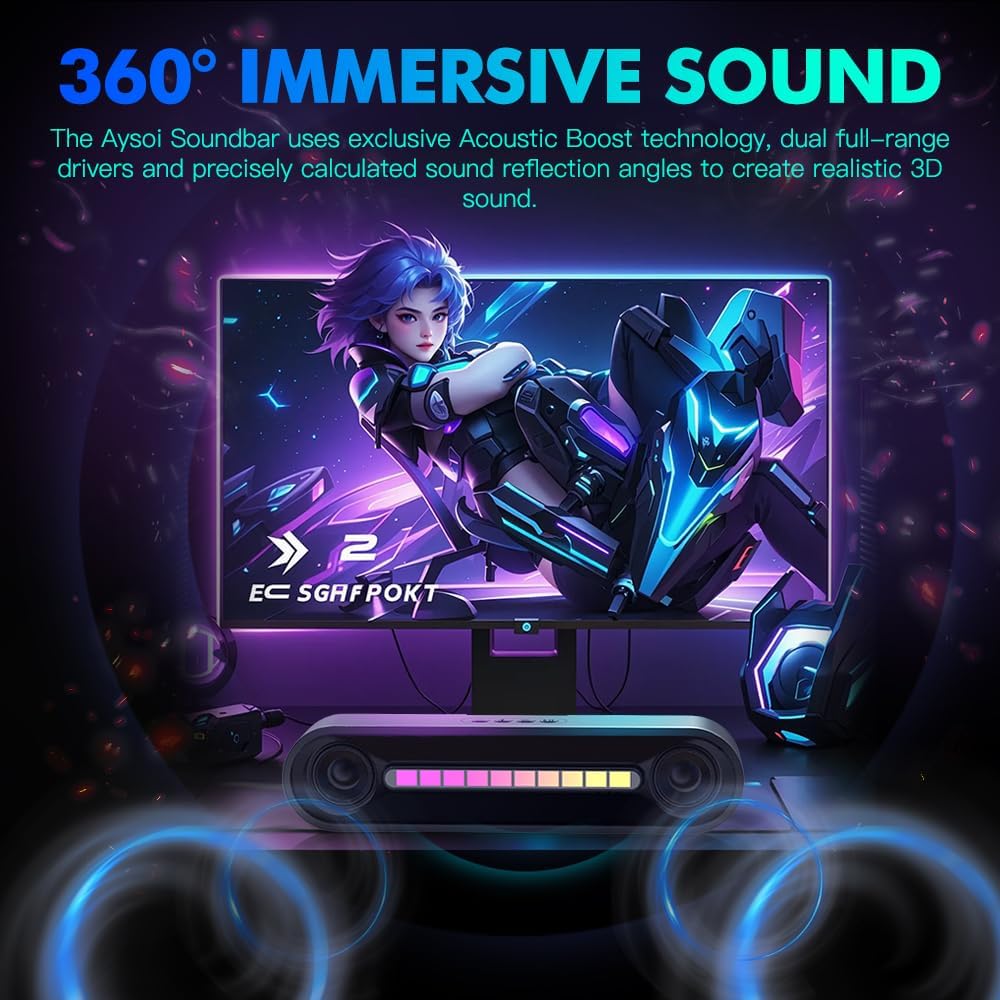 ð§ð¥ The Aysoi Bluetooth PC Speakers are a total audio powerhouse in a sleek, minimalist design! With 20W output power ð¥, dual full-range drivers, and 360° surround sound ðµ, it delivers cinema-grade immersive audio thatâs crystal clear for music, movies, and gaming ð®. Whether itâs the booming bass ð¶ or sharp highs, it nails every note! The metal frame + ABS build ð ï¸ not only looks stunning next to your 27â34â monitor ð», but also keeps cool with top-notch thermal design âï¸. Connectivity is a breeze with Bluetooth 5.3 ð¶, aptX HD, and support for Dolby Atmos and Windows Sonic ð§ plus it remembers up to 8 devices! ð Instant switch between your PC, PS5, Xbox, or phone with ease ð±ð®. And letâs talk about the Multi-Touch LED panel ð¡ not only can you control tracks and volume with a tap, but the dynamic RGB lighting syncs with your beats ðºð. Bonus: itâs made with eco-friendly, 92% recyclable materials ð±! Whether youâre at home, in the office, or chilling at the beach ðï¸, this speaker brings style, sustainability, and serious sound. ðð
