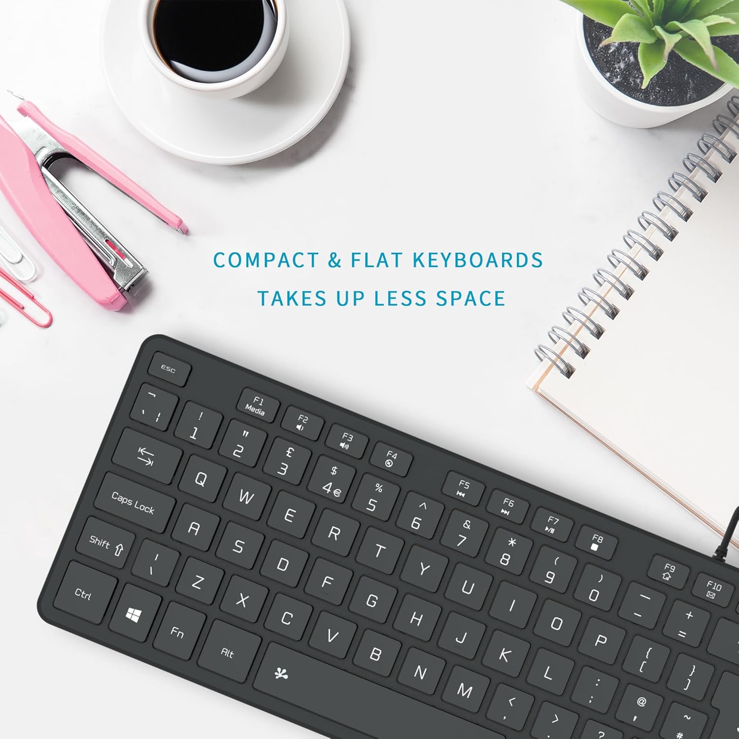 B.FRIENDIT Slim USB Wired Keyboard, Soft Touch and Quiet Key for PC, Laptop and Computer, Full Size QWERTY UK Layout – Black