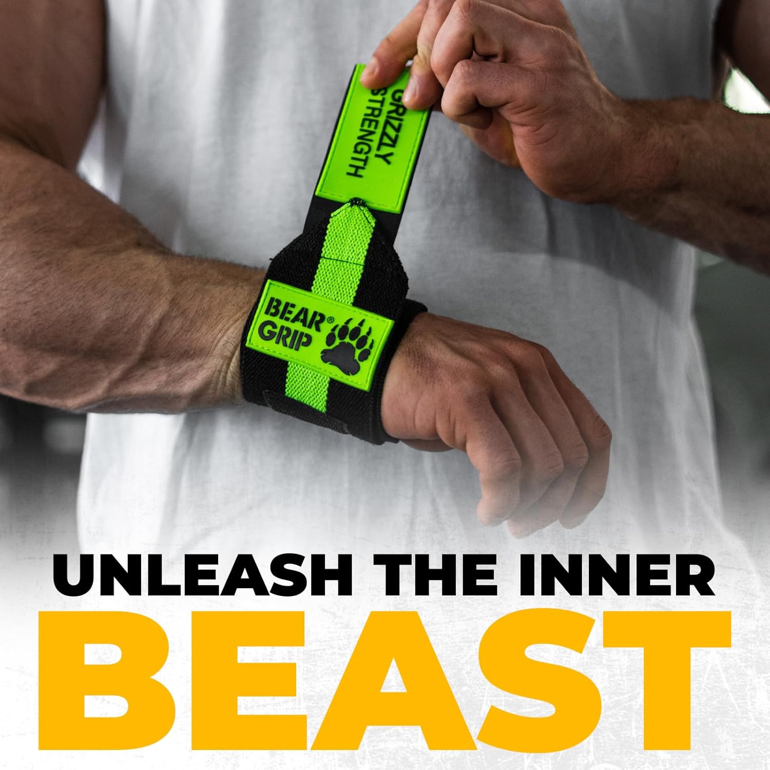 BEAR GRIP – GRIZZLY STRENGTH Edition Premium Wrist wraps are what you need for extra support in the wrist joint to lift heavy weights and reach your full potential