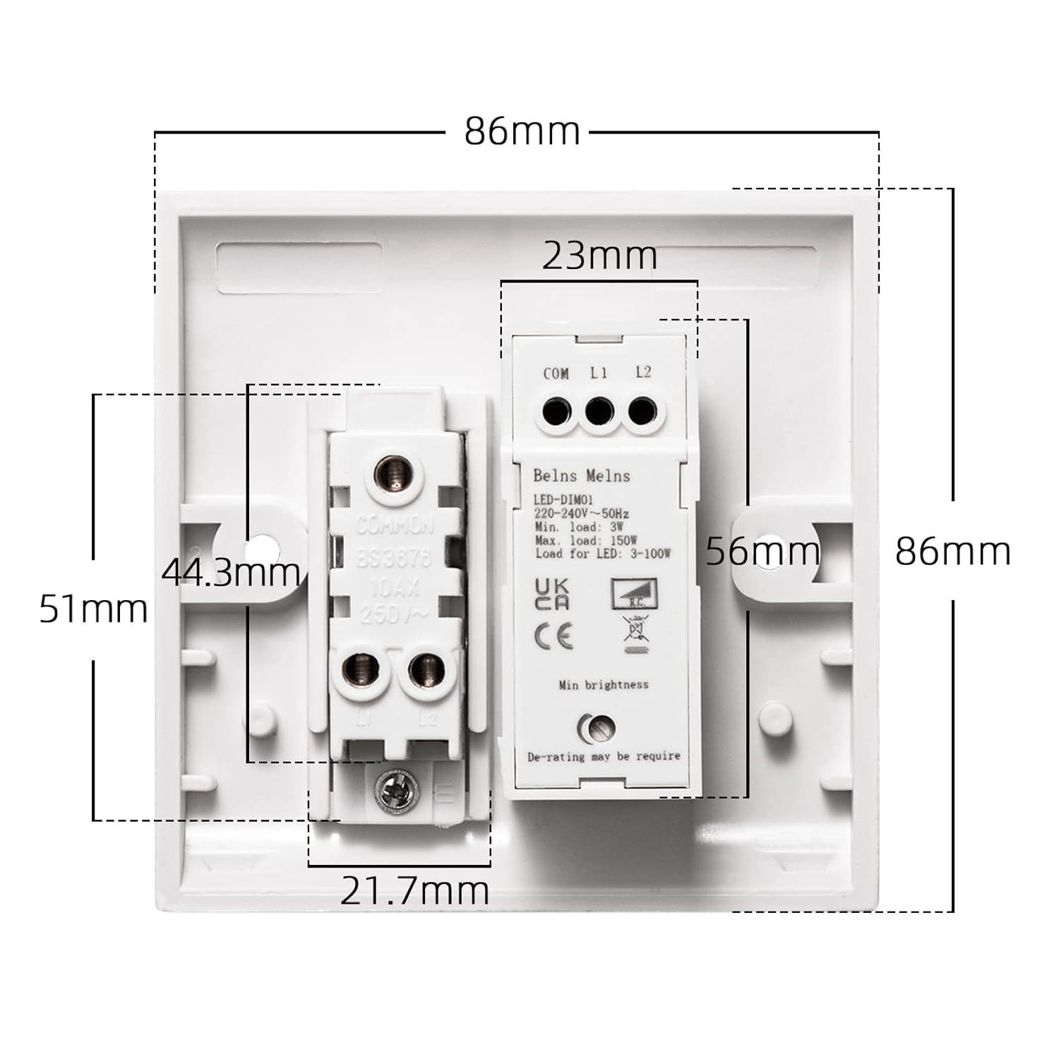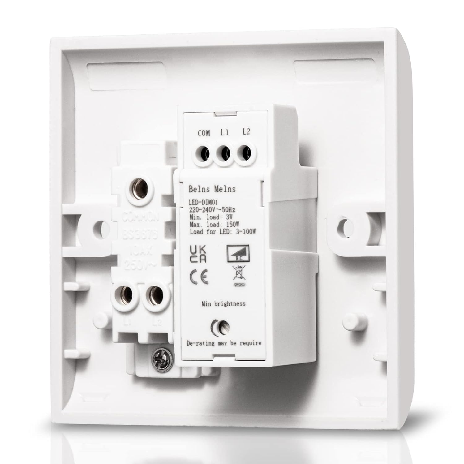 This is an effective switch at a good price. Don’t be put off by the large number of Vine reviews by users with no skin in the game! I bought this dimmer/rocker switch to control 12 x 6w dimmable LED downlights and separately switch kitchen under cabinet task lighting on & off. A 25mm deep plaster or surface mounted patress box is needed – or a spacer.Dimming action is smooth with no flicker or buzzing. The dimmer knob is pushed to turn on/off at any light level. The switch itself arrived fully assembled with comprehensive wiring instructions in clear english. A helpline email address is provided – I haven’t had to use it.Not a slim and sleek switchplate, but I’m very happy with it.