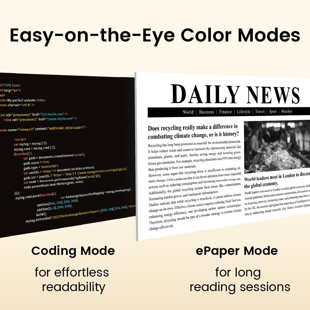 IPS PANEL COLOR MODES: With Gaming Mode, Coding Mode and ePaper Mode, ensuring effortless readability and long reading sessions eye comfort