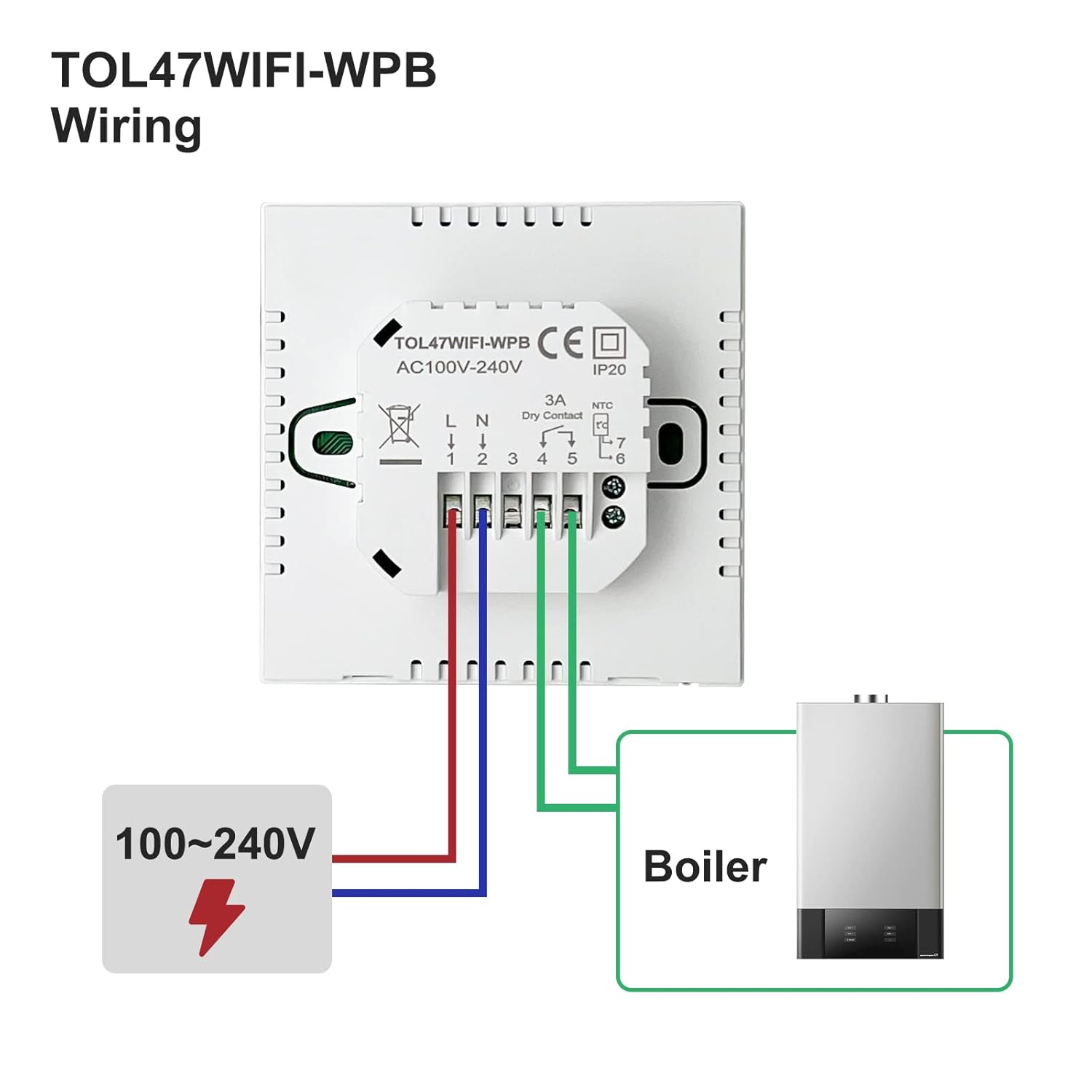 Really impressed with this smart thermostat, Iâve connected it to a combination boiler at my elderly motherâs house, Iâve easily set up the timer and temperature settings on the Tuya app on my phone and linked it to alexa with a simple I am hot and I am cold routine that means she can control her heating without having to learn how to use it.This thermostat needs a neutral cable to work and has 0 volt contacts so it will need a physical link between permanent live and the output contact.Setup was quick and intuitive, I powered up and opened the app the thermostat was already detected and waiting to be paired, added wifi password and it connected immediately and Alex also detected it and notified me without issueHighly recommend