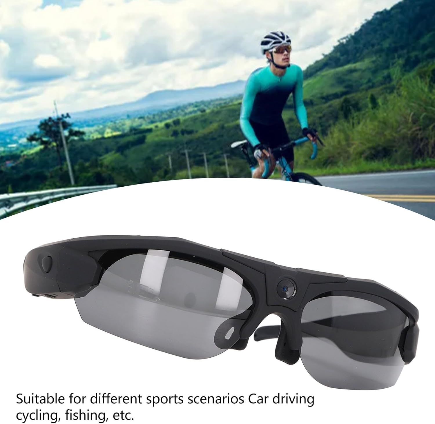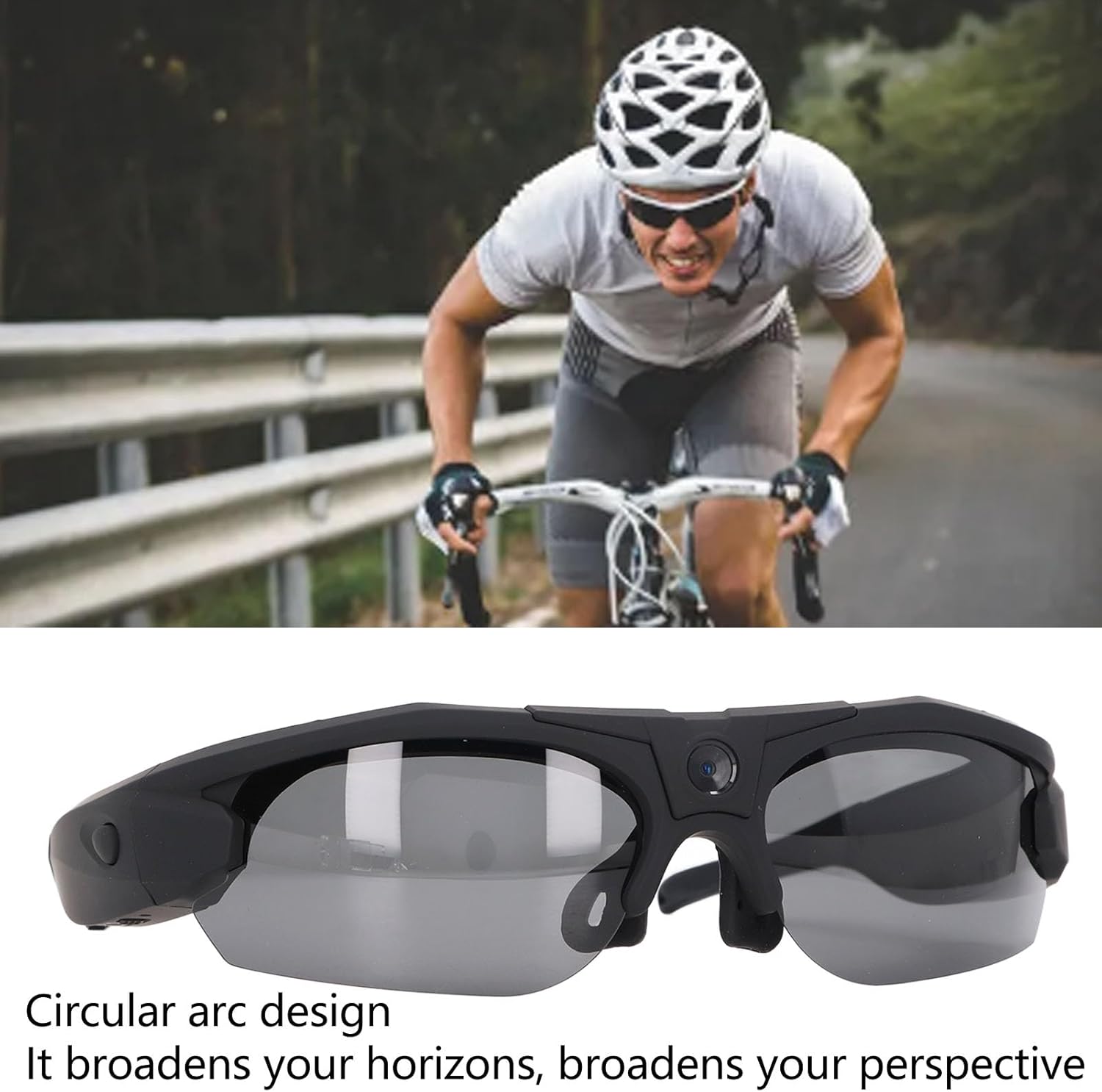Arc Design: Bluetooth sunglasses universal fit for different face shapes, designed with a wrap around frame and non slip nose pads for a secure and comfortable fit. Sunglasses camera can broaden the vision, broad perspective, suitable for different sports scenes, car driving, cycling, fishing and so on.