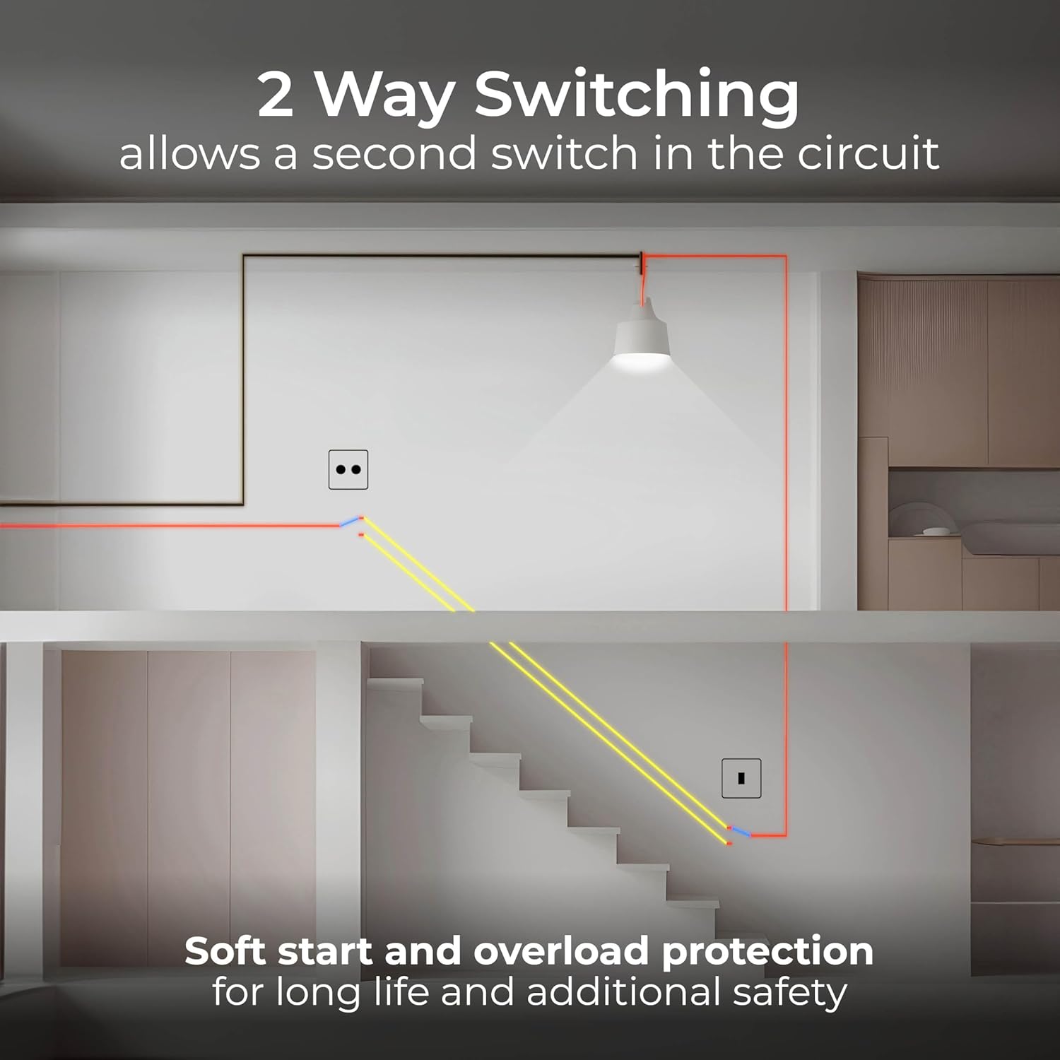 INTELLIGENT TRAILING-EDGE DIMMER: Trailing (lagging) edge for dimming LED, dimmable CFLs and traditional lights โ smooth operation of your lighting with no buzzing. Soft-start brings the lights to a set level quickly, extending the lifespan of bulbs