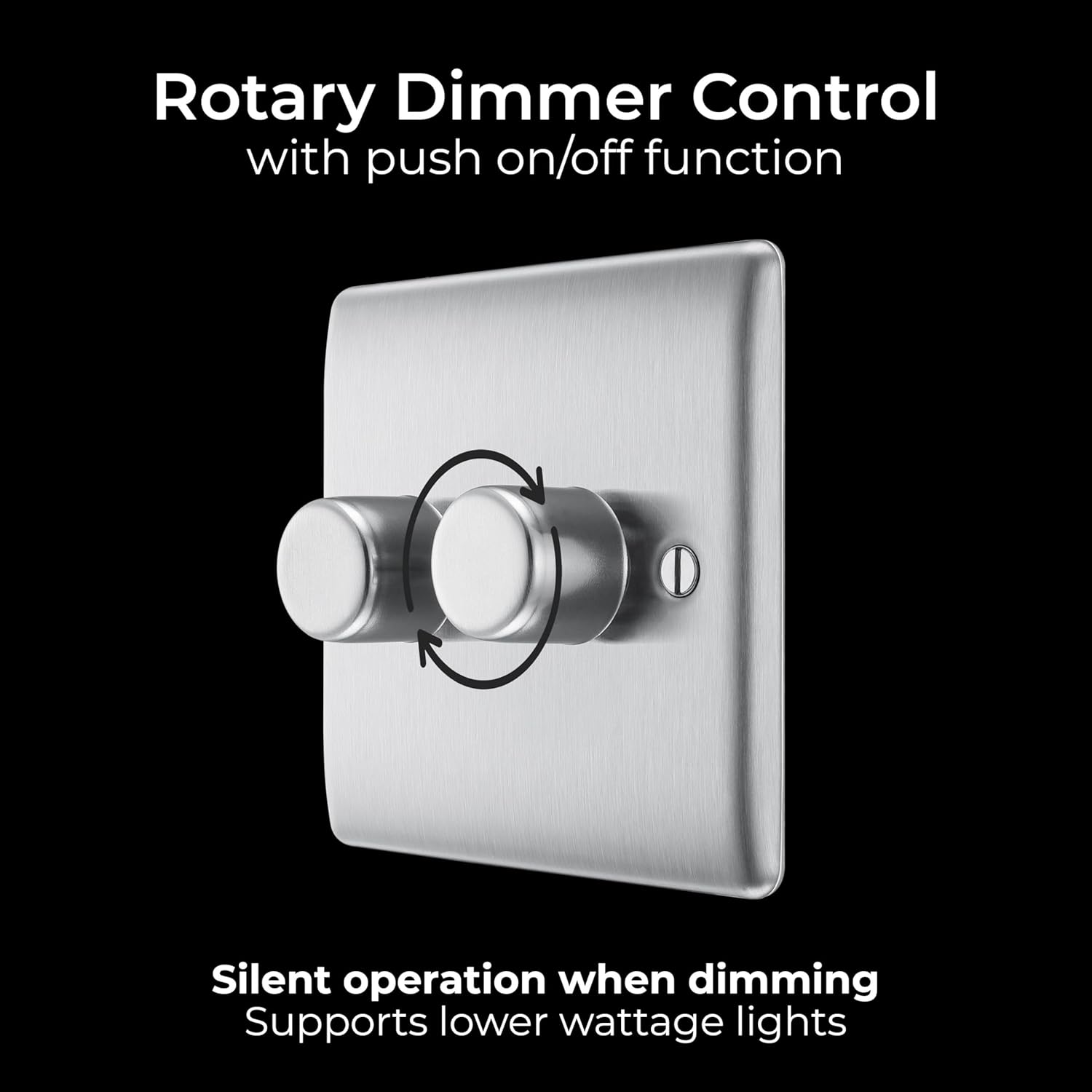 I had to buy this dimmer switch after I changed the light on my lounge ceiling and found the bulbs were too bright. As the bulbs were dimmable it made sense to get a dimmer switch.. It is a lovely brushed steel which matches my other light switches.I’m disabled and in a wheelchair, I’ve limited hand dexterity and as I found the switch that was already on the wall easy to use I was wary of changing it.It was very easy to install, my brother in law swapped the switches in a matter of minutes.. My right hand is my dominant hand so I’ve to reverse into the lounge to switch the light on. I found this switch very easy to use. I have my light switches at a lower level than normal so i can reach them. With this dimmer switch I just push the button to switch it on then turn the knob to the right to brighten it, then turn it back to dim it. Then I push the knob to make sure the light is definitely off.I’ve found this switch to be good value for money, it’s easy to use and I can have my light at just the right brightness nowIt has a good range of brightness, though I suppose it depends on what type of bulb you use. My bulbs are E27 and they cast a beautiful light over the ceiling when on full power.