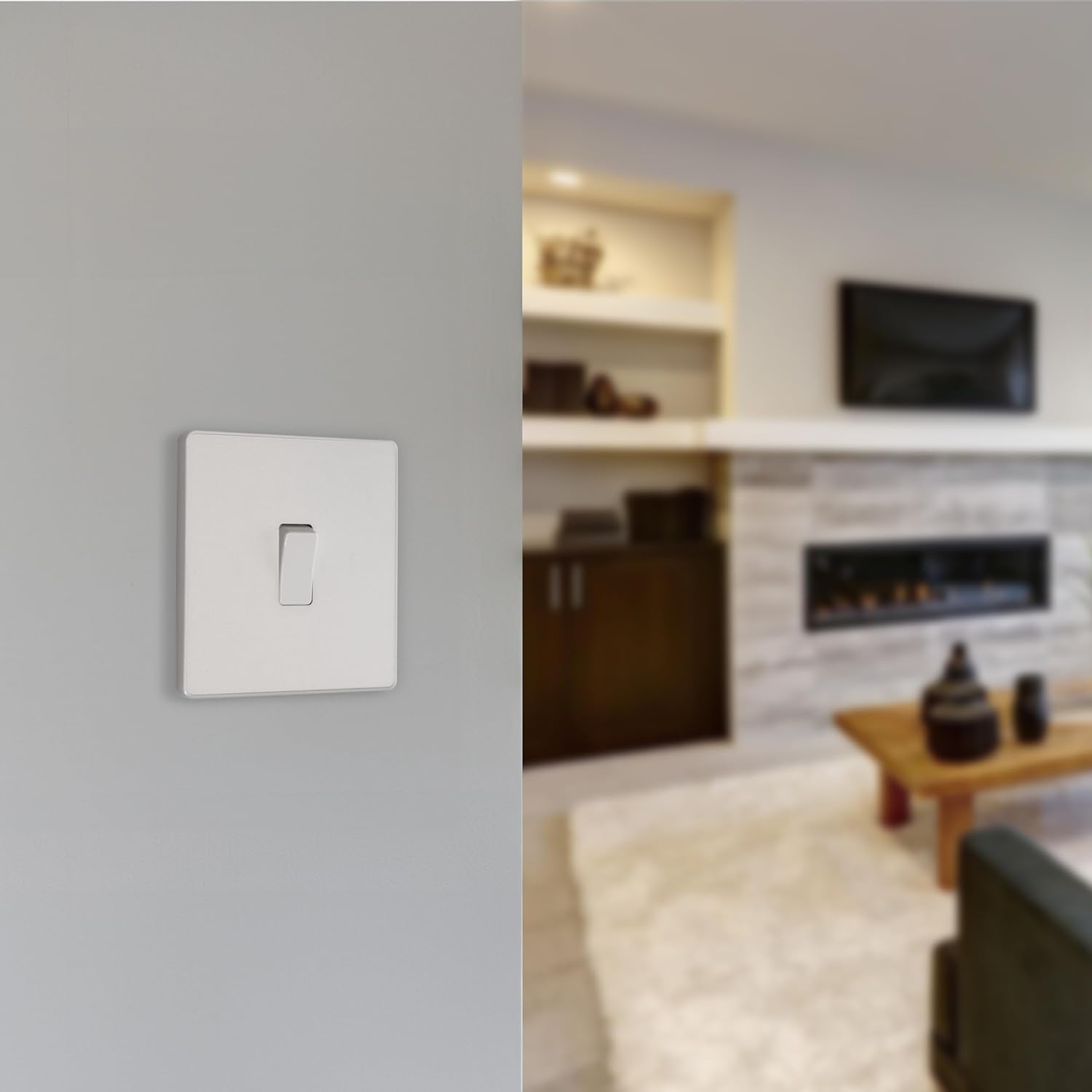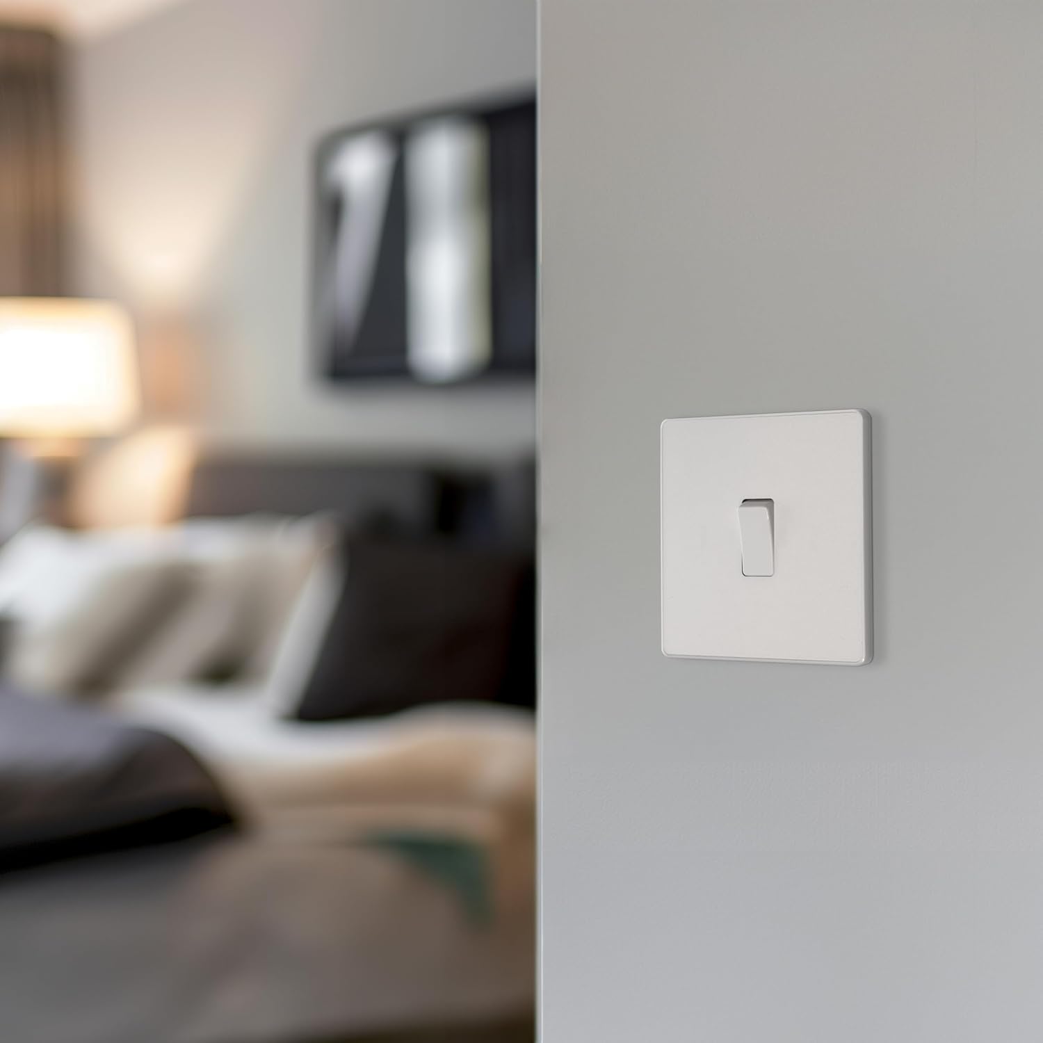 STYLISH, CONTEMPORARY SINGLE LIGHT SWITCH: From BG Electrical, a pearlescent white finish and a low profile – perfectly accenting, contrasting or blending sleekly into modern interior design