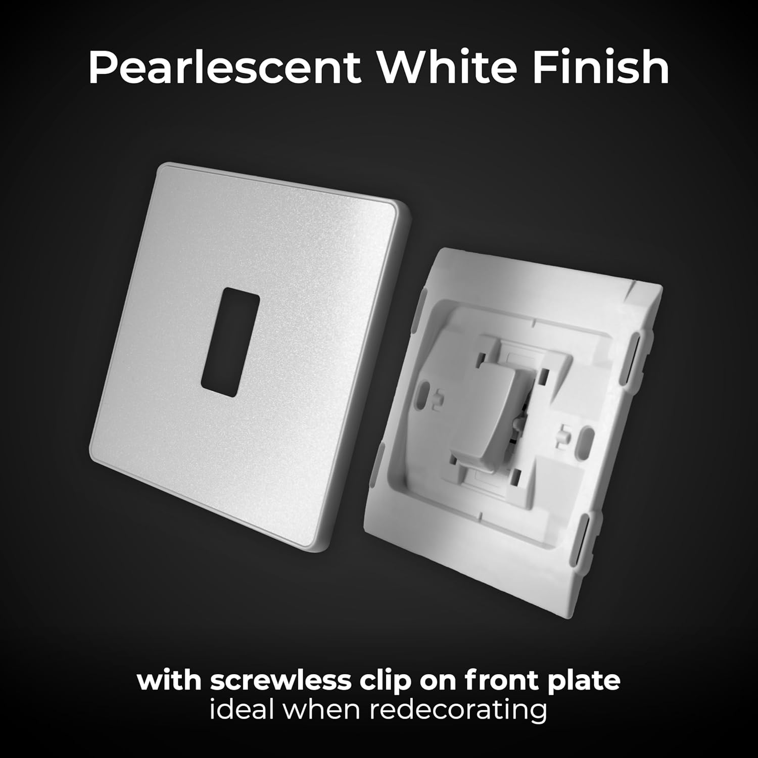 PART OF THE BG EVOLVE RANGE: The screwless front plate can be easily clipped on and off without affecting the base box โ making life easier when the time comes to redecorating