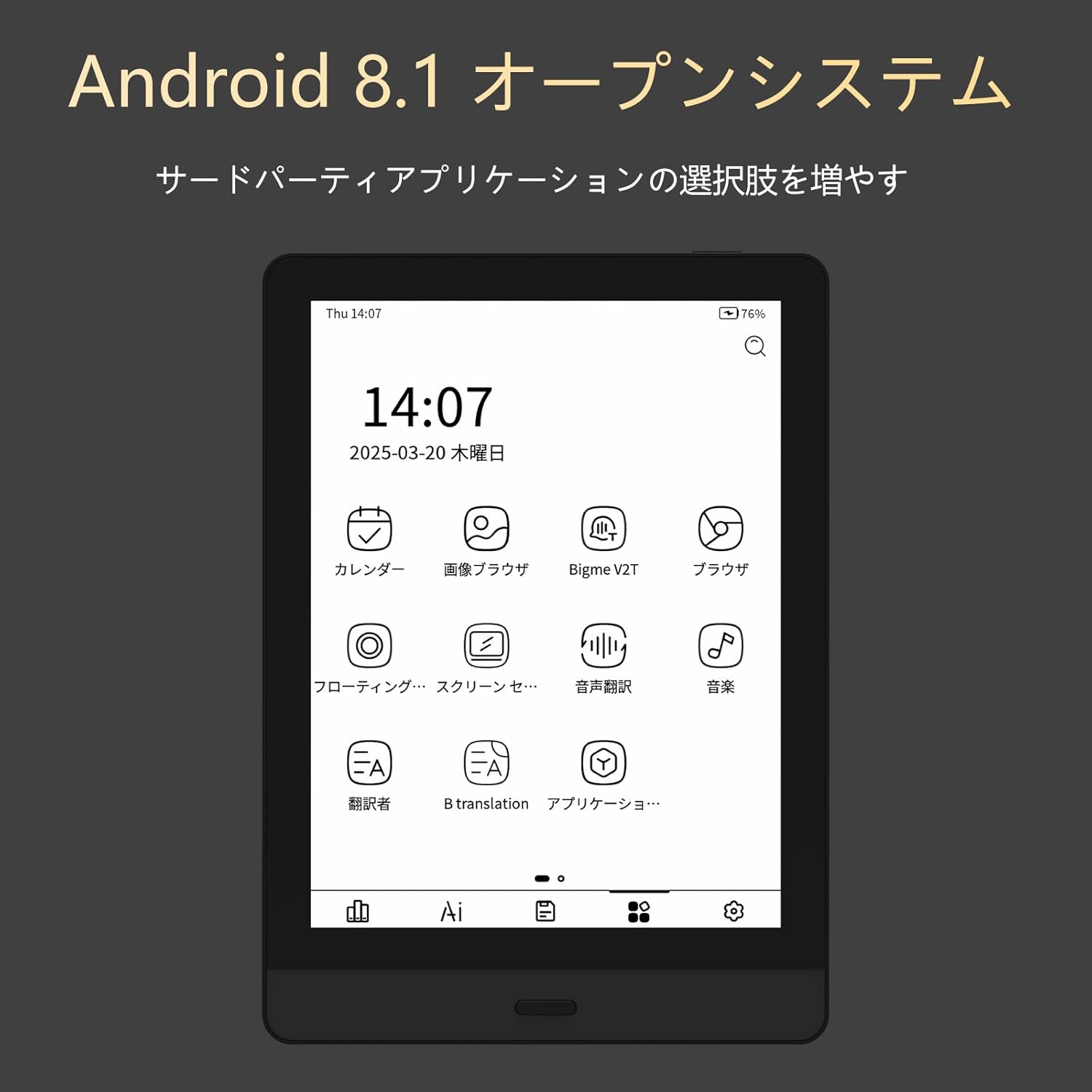 User-friendly interface: Navigate effortlessly with the physical home button, providing an intuitive user experience and easy access to your favorite books and settings on the Bigme Eink Tablet.
