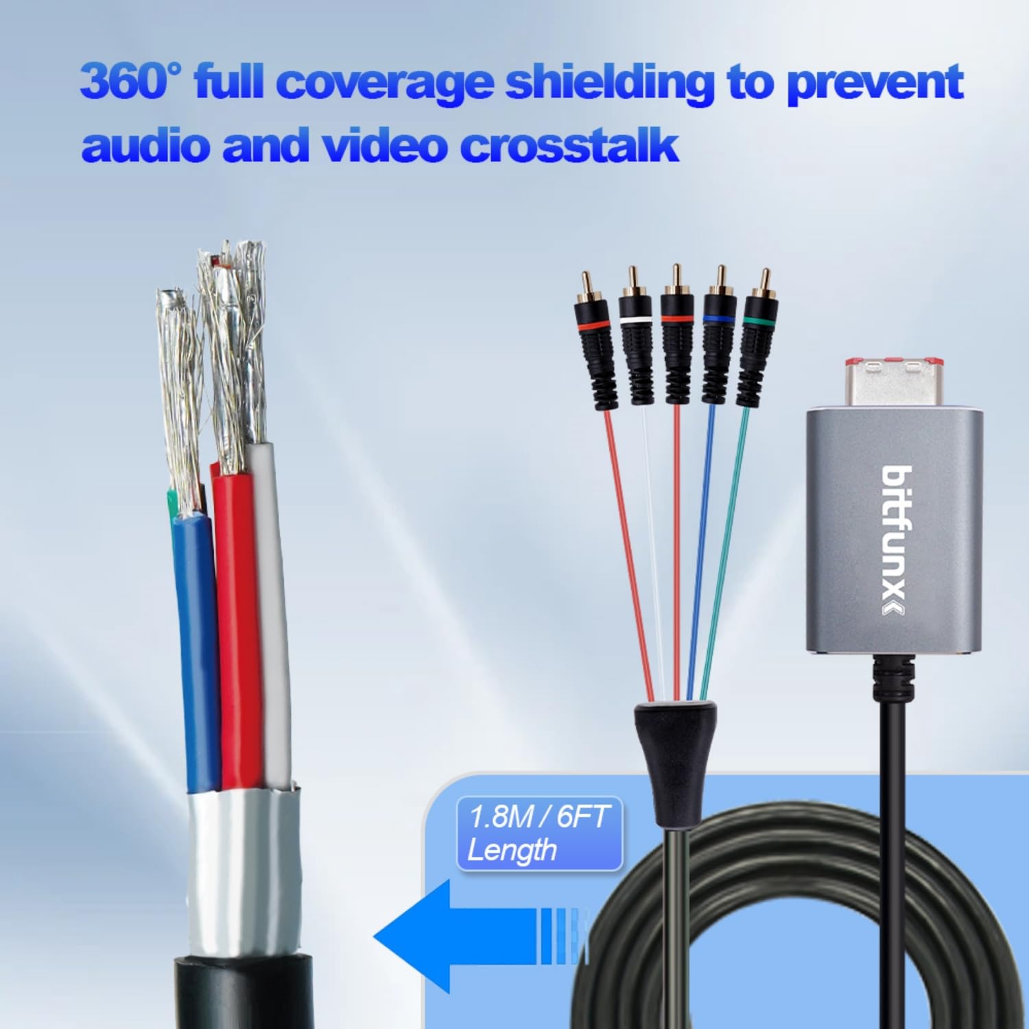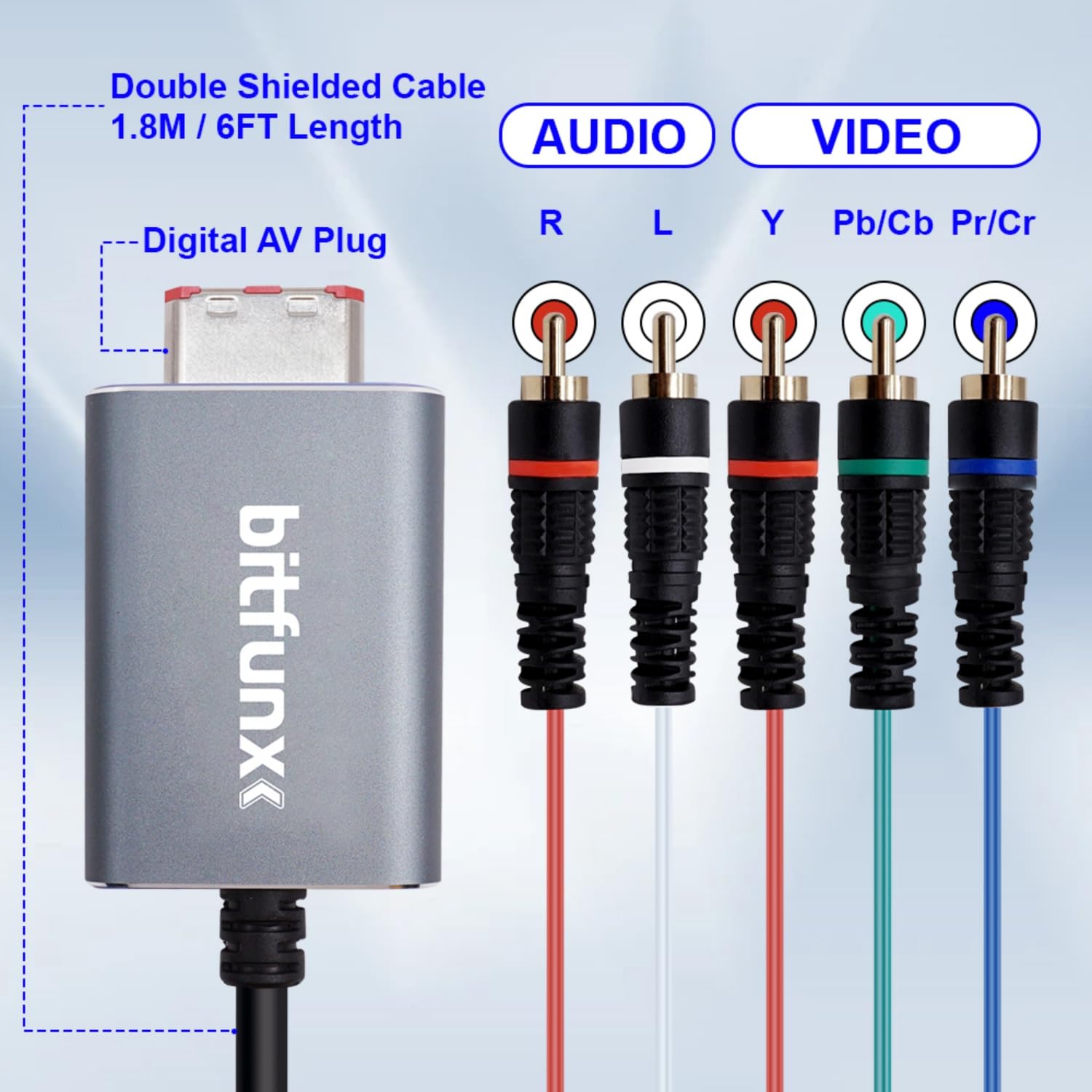BITFUNX NGC Component Cable Adapter – Supports Video (3RCA) and Audio (2RCA), Plug & Play Video Game Adapter With No Lag, Converter for NGC Console (6 ft)